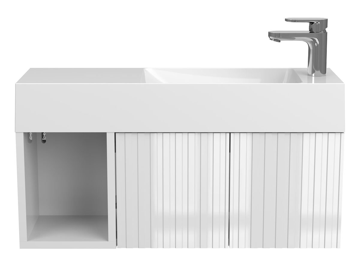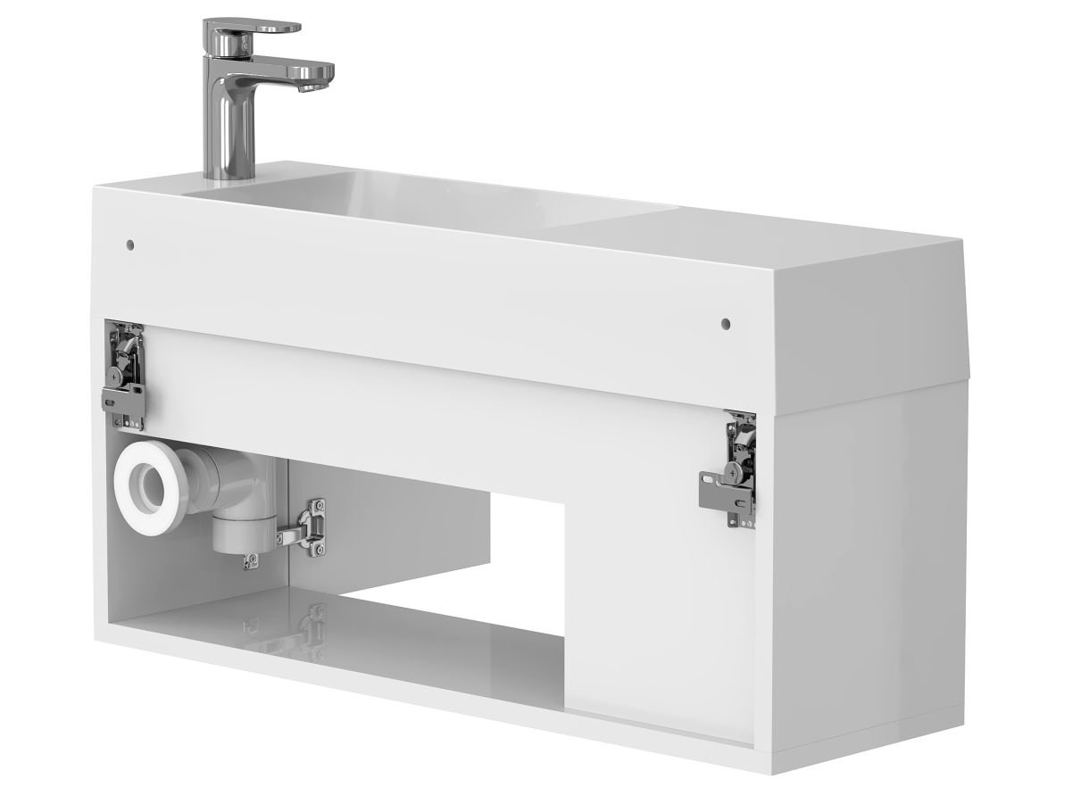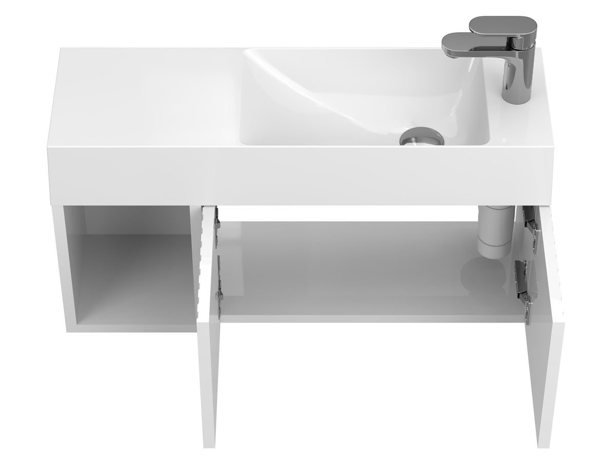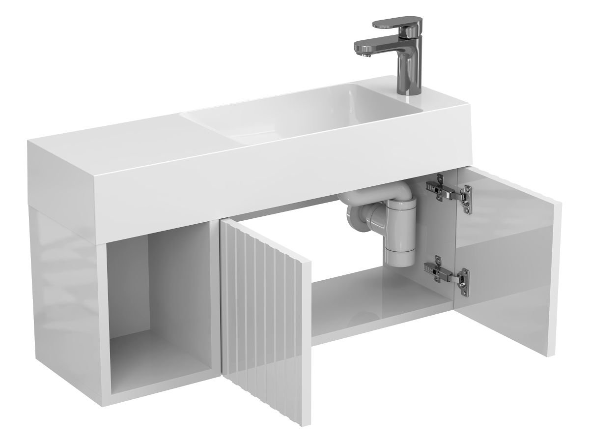 Тумба підвісна AURA біла глянцева з умивальником SHANGHAI R від бренду MIRAGGIO — практичне та стильне рішення для ванної кімнати дому, готелю чи апартаментів.