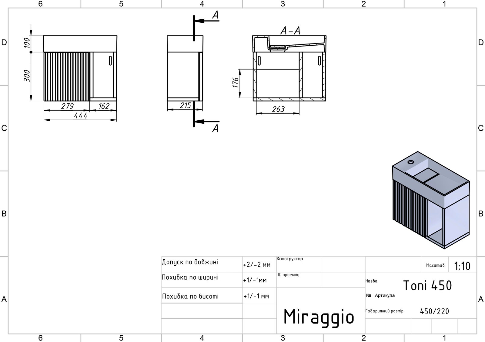Тумба підвісна AURA біла матова для умивальника TONI 450