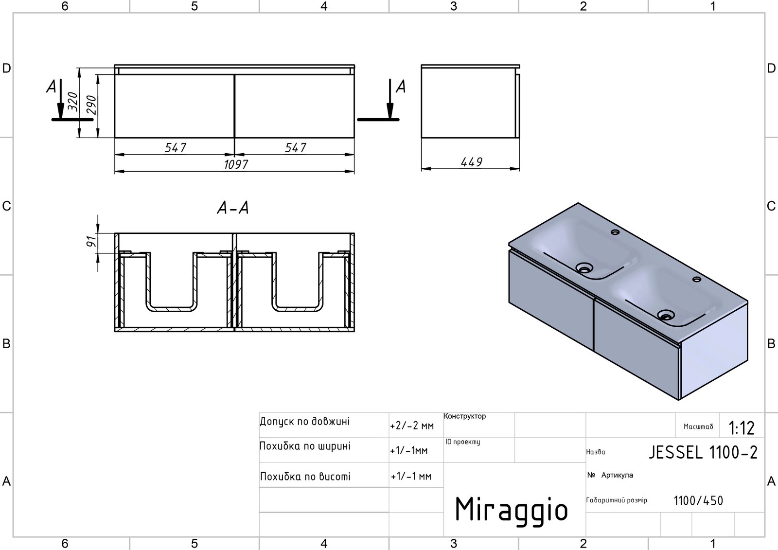Тумба підвісна BASE Біла матова для умивальника JESSEL 1100 D