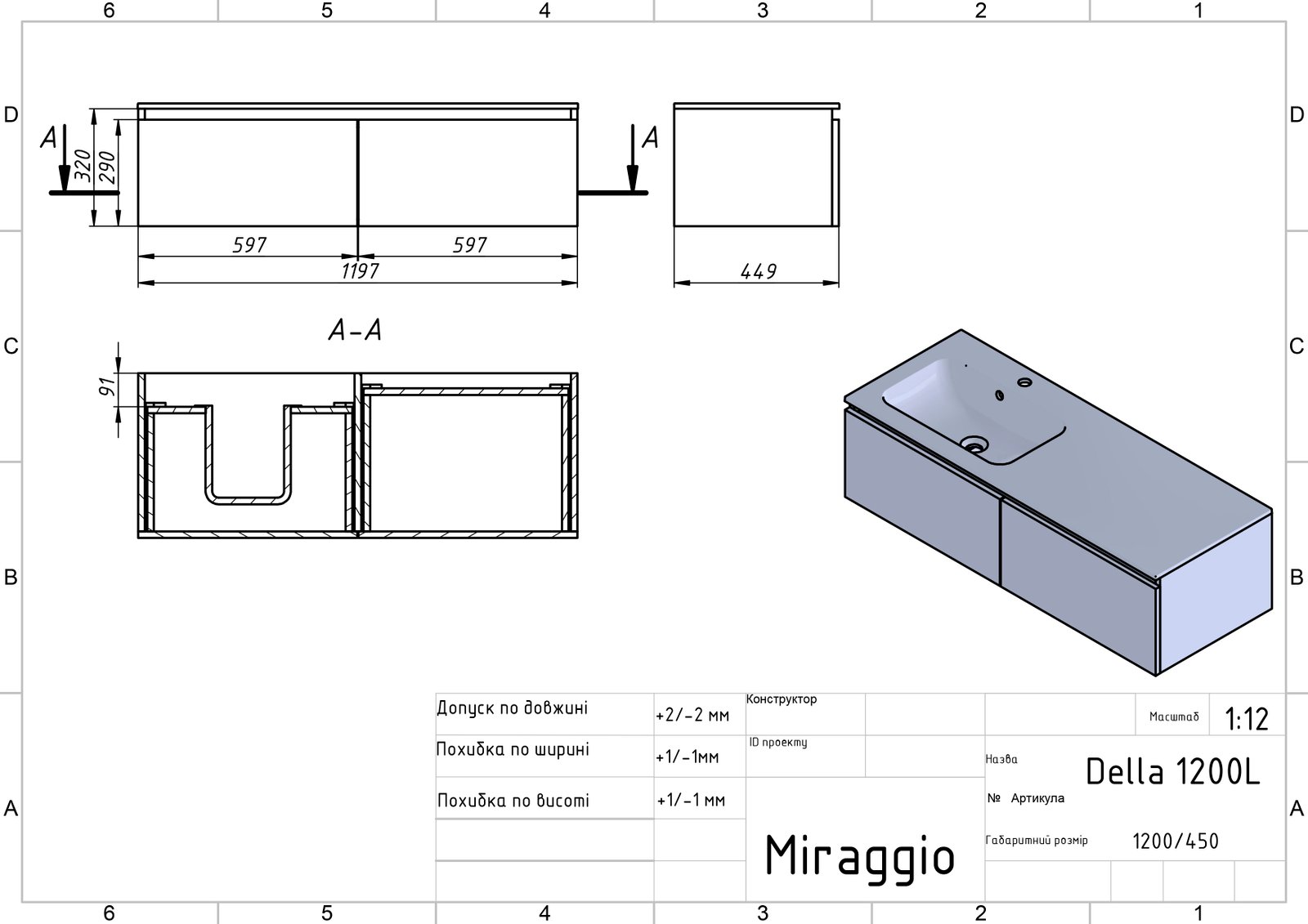Тумба підвісна BASE Сіра глянцева для умивальника DELLA 1200 L