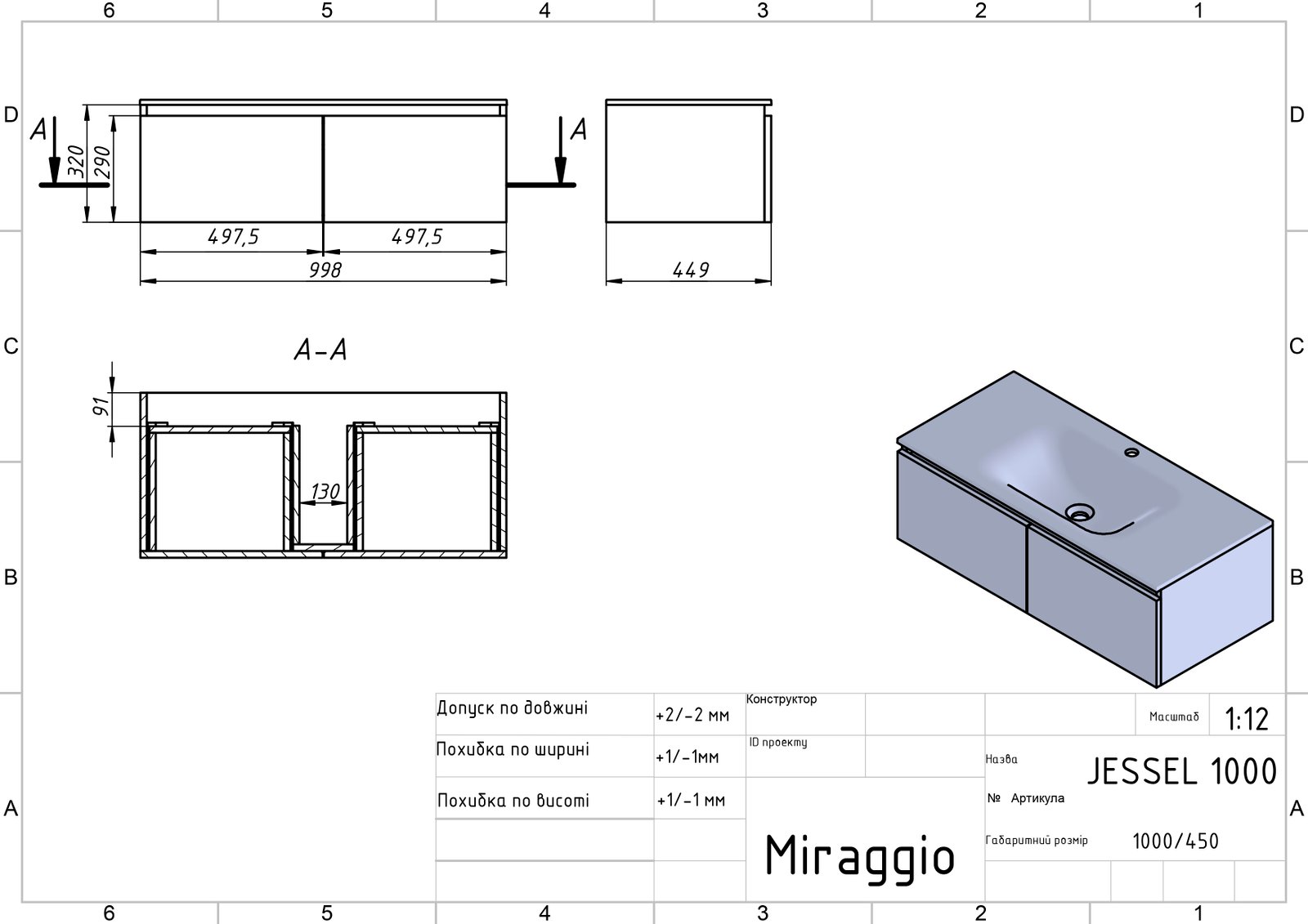 Умивальник, тумба у зібраному вигляді