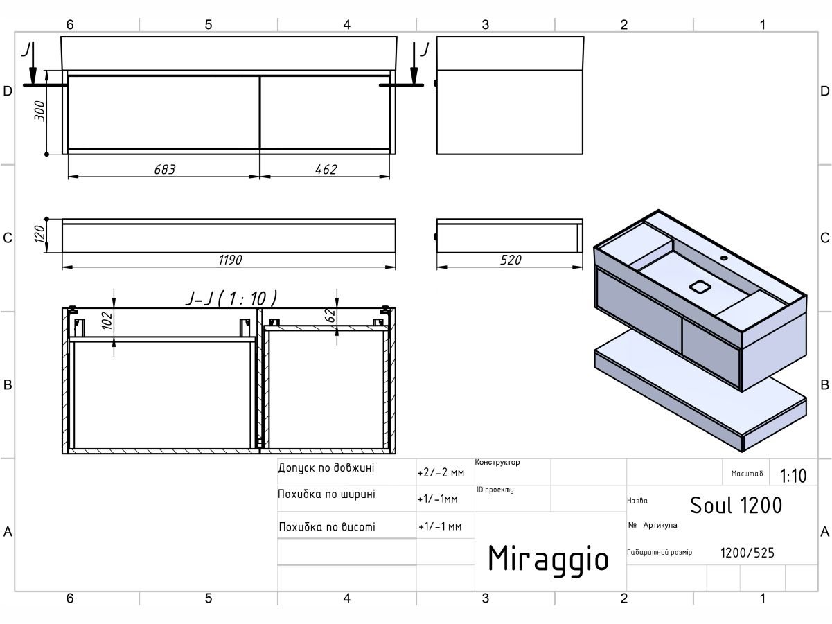 Тумба підвісна DUO Біла для умивальника SOUL 1200