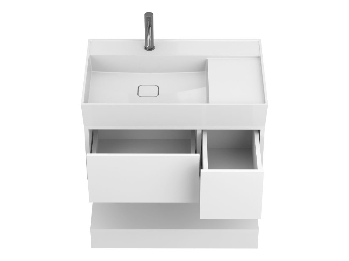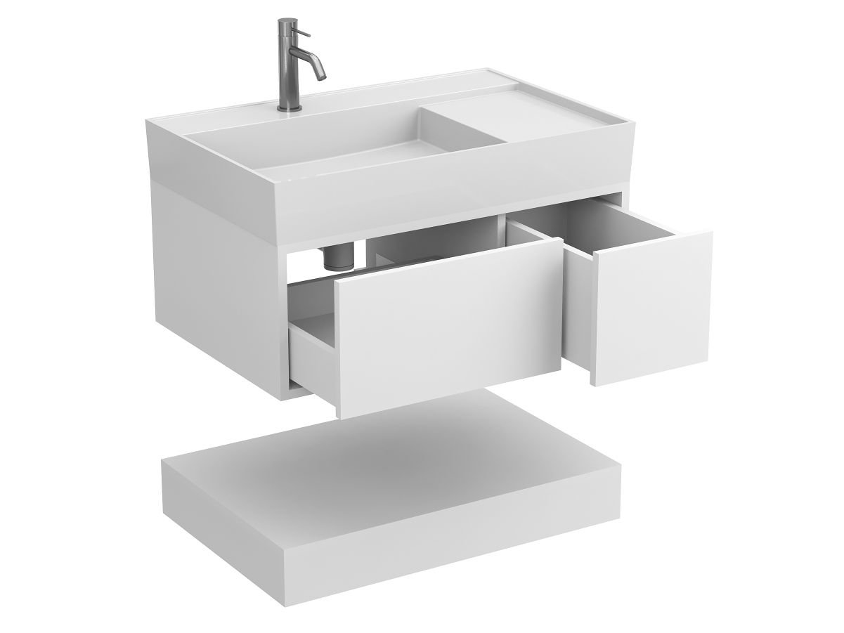 Тумба підвісна DUO Біла з умивальником SOUL 800 від бренду MIRAGGIO — практичне та стильне рішення для ванної кімнати дому, готелю чи апартаментів.