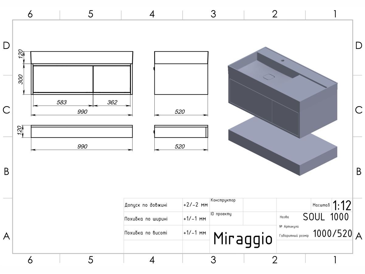 Тумба підвісна DUO Сірий для умивальника SOUL 1000