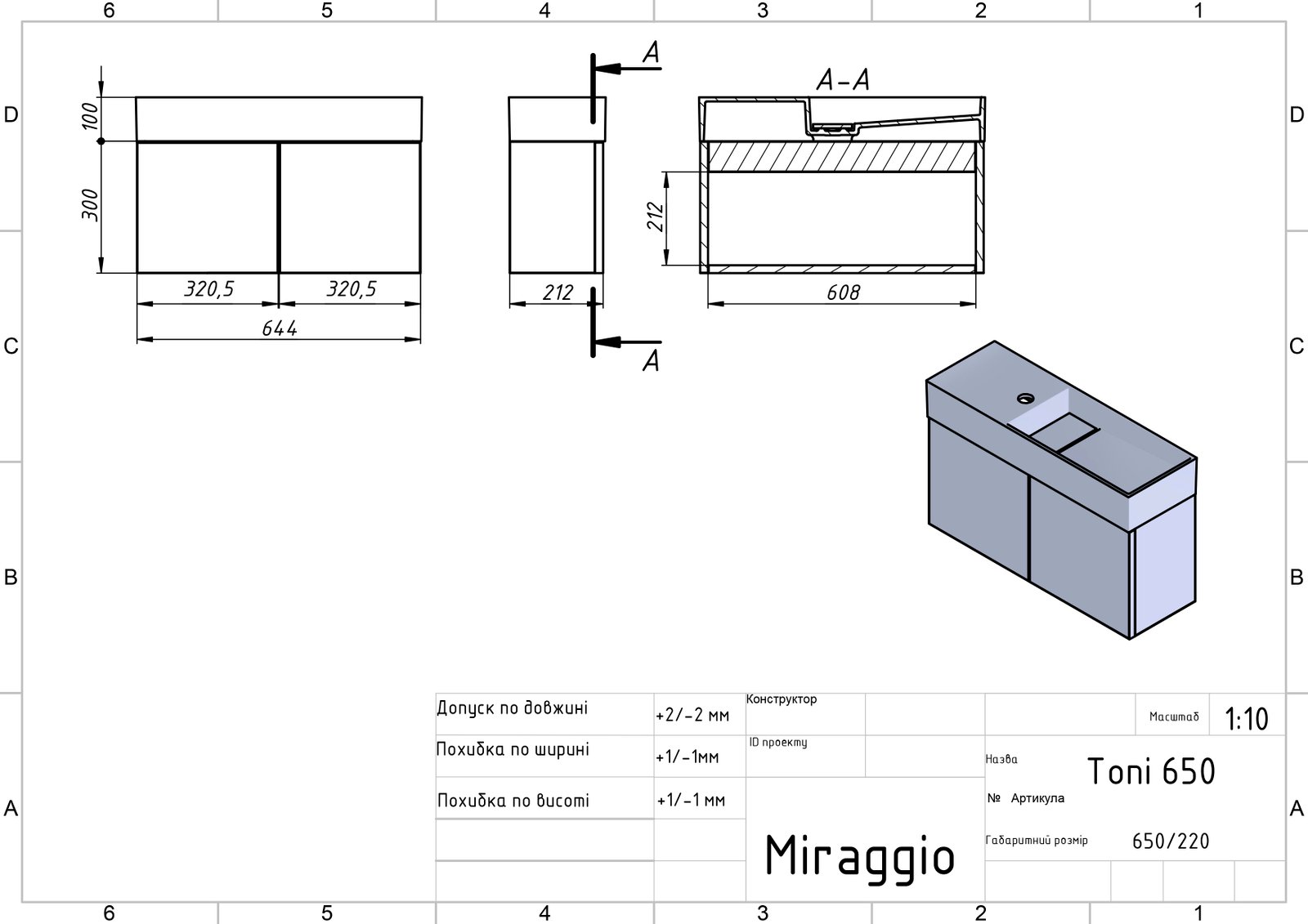 Тумба підвісна MINIMA синя для умивальника TONI 650