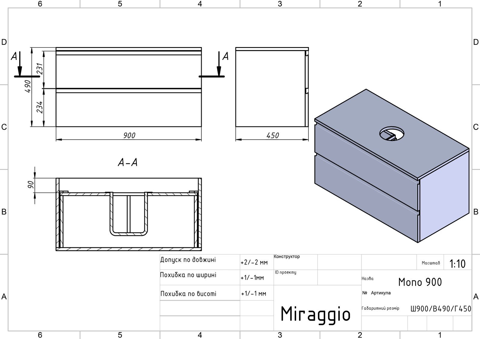 Тумба підвісна MONO 900 Біла глянцева з умивальником KIRA