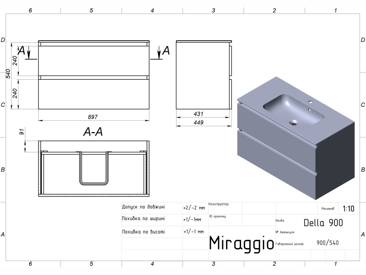 Тумба підвісна NATURA біла матова для умивальника DELLA 900