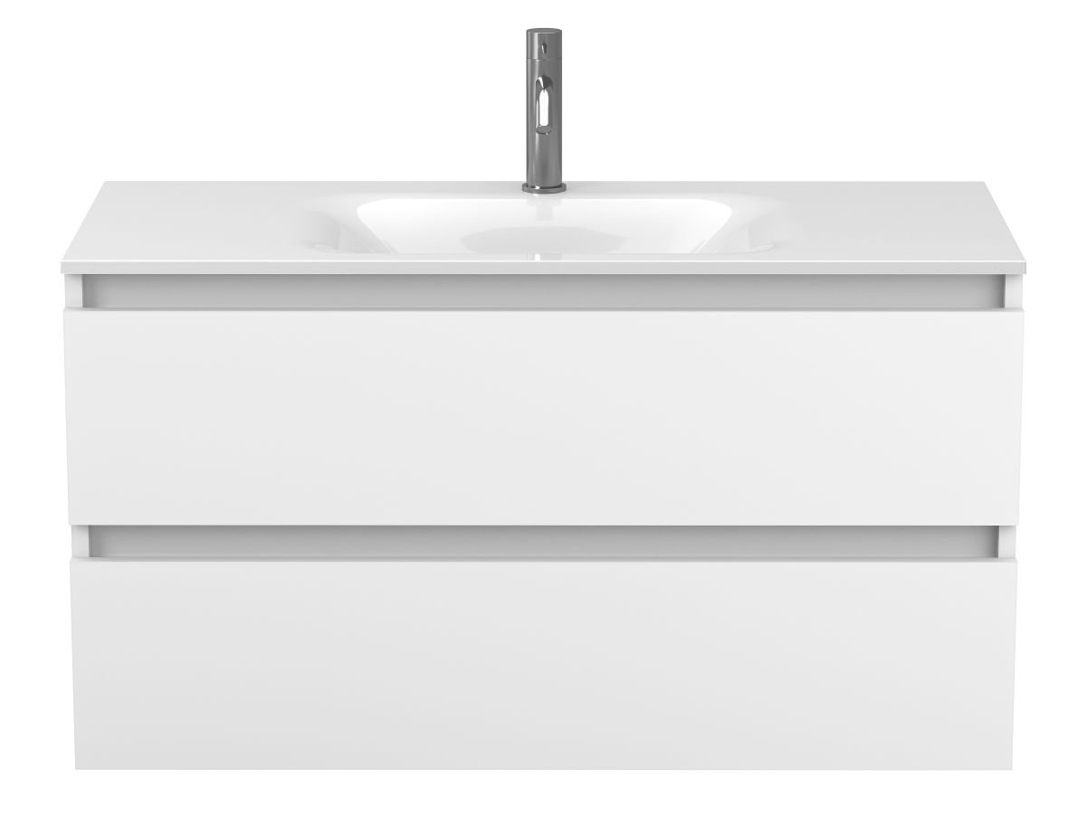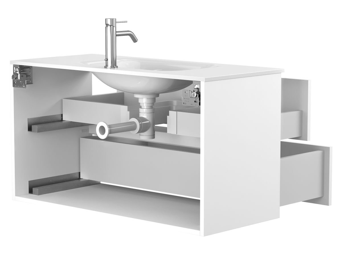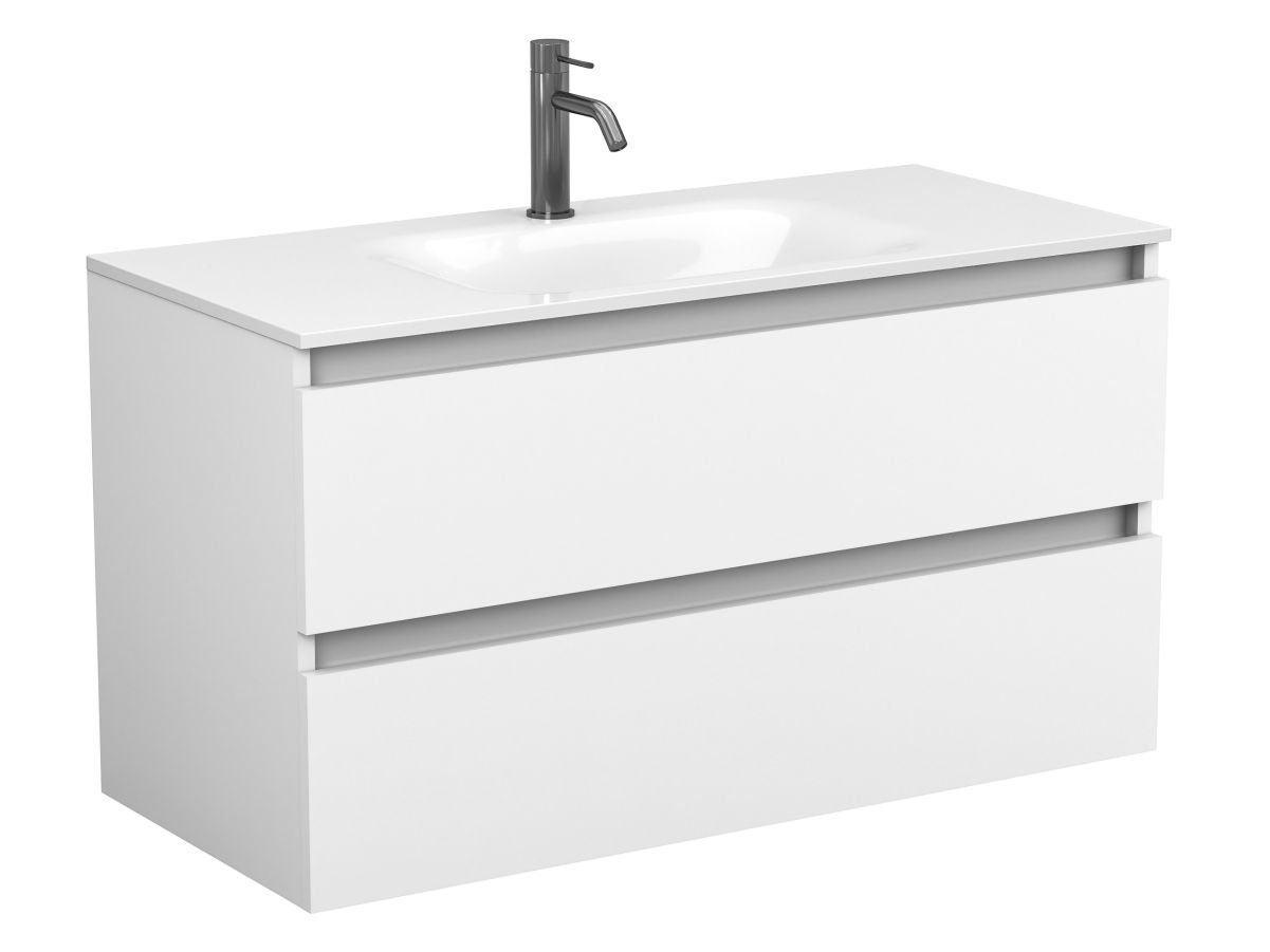 Тумба підвісна NATURA біла матова з умивальником JESSEL 1000 від бренду MIRAGGIO — практичне та стильне рішення для ванної кімнати дому, готелю чи апартаментів.