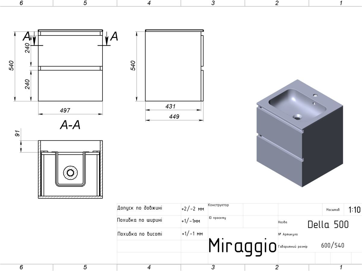 Ширина виробу — 500 мм робить модель зручною для приміщень різної площі. Спосіб відчинення шухляд у даній моделі тумби - За фасад.