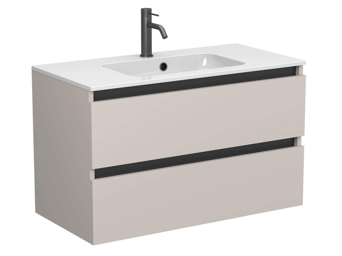 Тумба підвісна NATURA кашемір, ДСП з умивальником DELLA 900 від бренду MIRAGGIO — практичне та стильне рішення для ванної кімнати дому, готелю чи апартаментів.