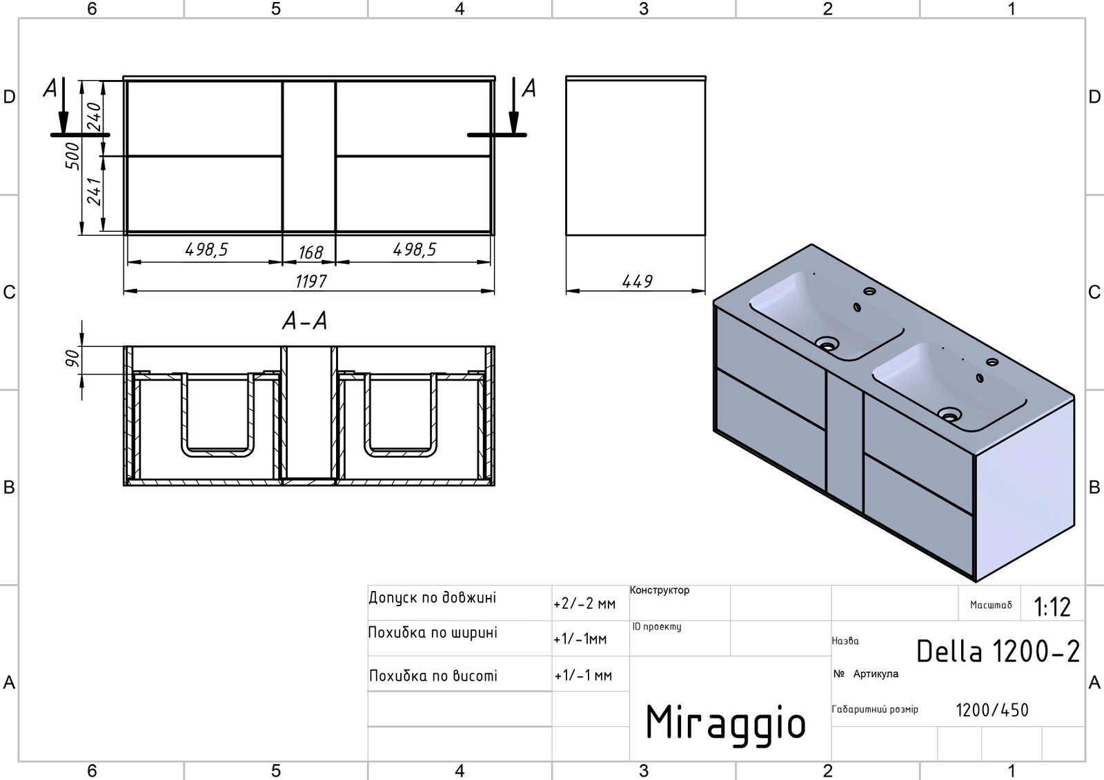 Тумба підвісна SPACE Біла глянцева для умивальника DELLA 1200 D