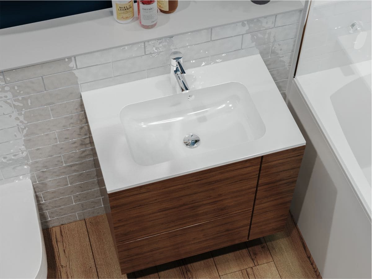 Прямокутний за формою чаші раковина має тип монтажу - врізний;на тумбу, врахуйте це перед замовленням меблів у ванну кімнату.