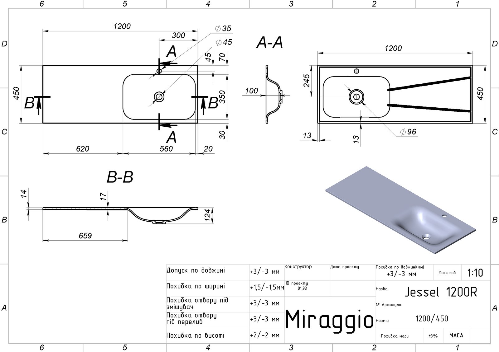 Умивальник JESSEL 1200 R від бренду MIRAGGIO - це ідеальне рішення для санвузла дому, готелю чи дачі.