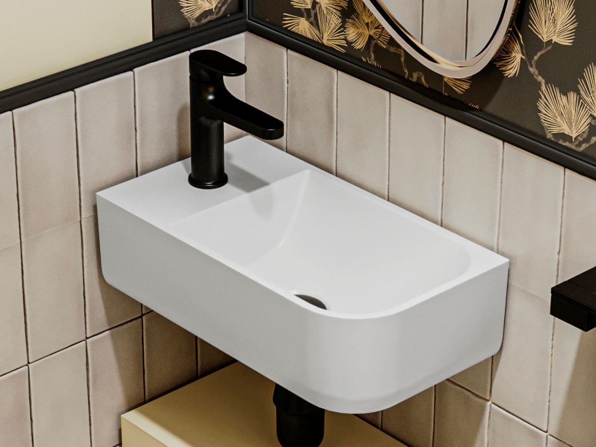 Прямокутний за формою чаші раковина має тип монтажу - підвісний, врахуйте це перед замовленням меблів у ванну кімнату.