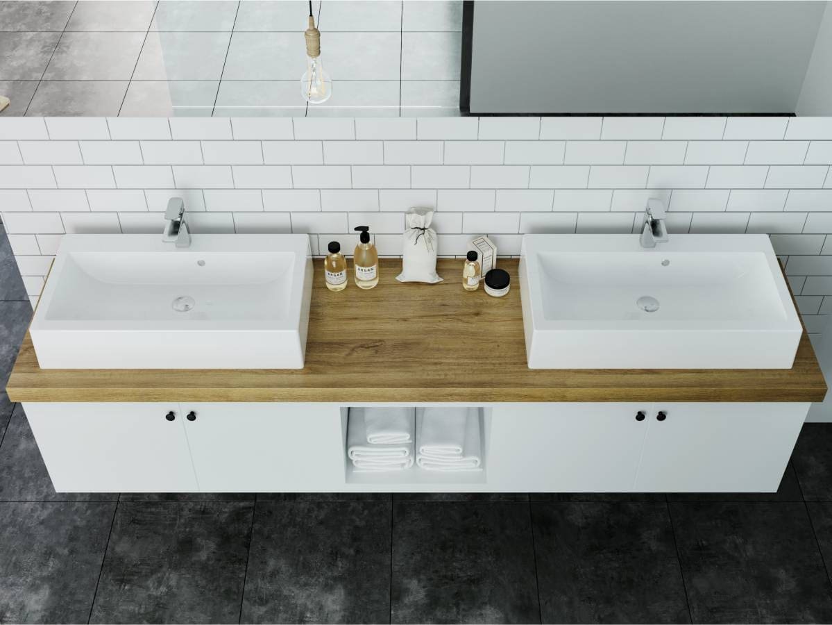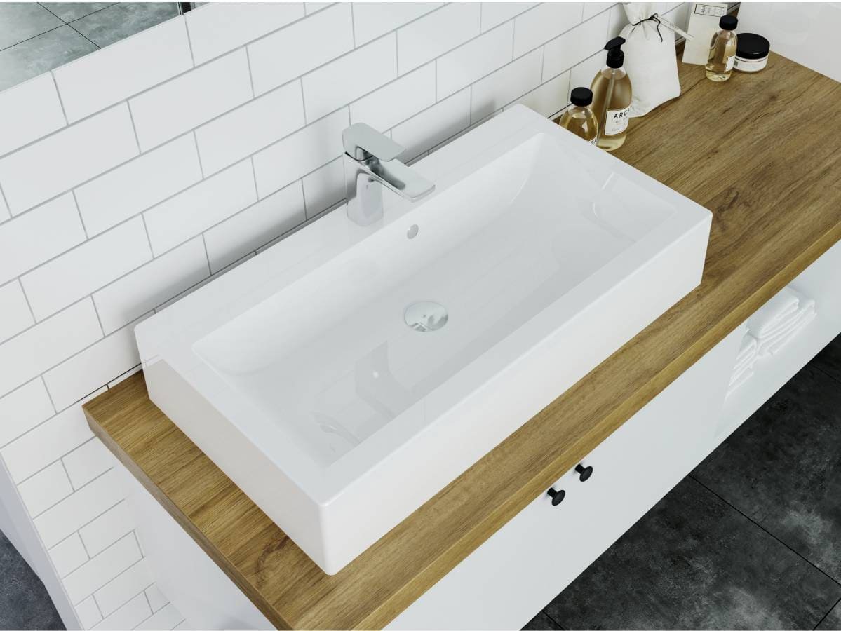 Прямокутний за формою чаші раковина має тип монтажу - на тумбу, врахуйте це перед замовленням меблів у ванну кімнату.