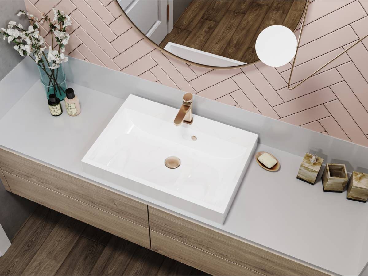 Прямокутний за формою чаші раковина має тип монтажу - врізний;на тумбу, врахуйте це перед замовленням меблів у ванну кімнату.