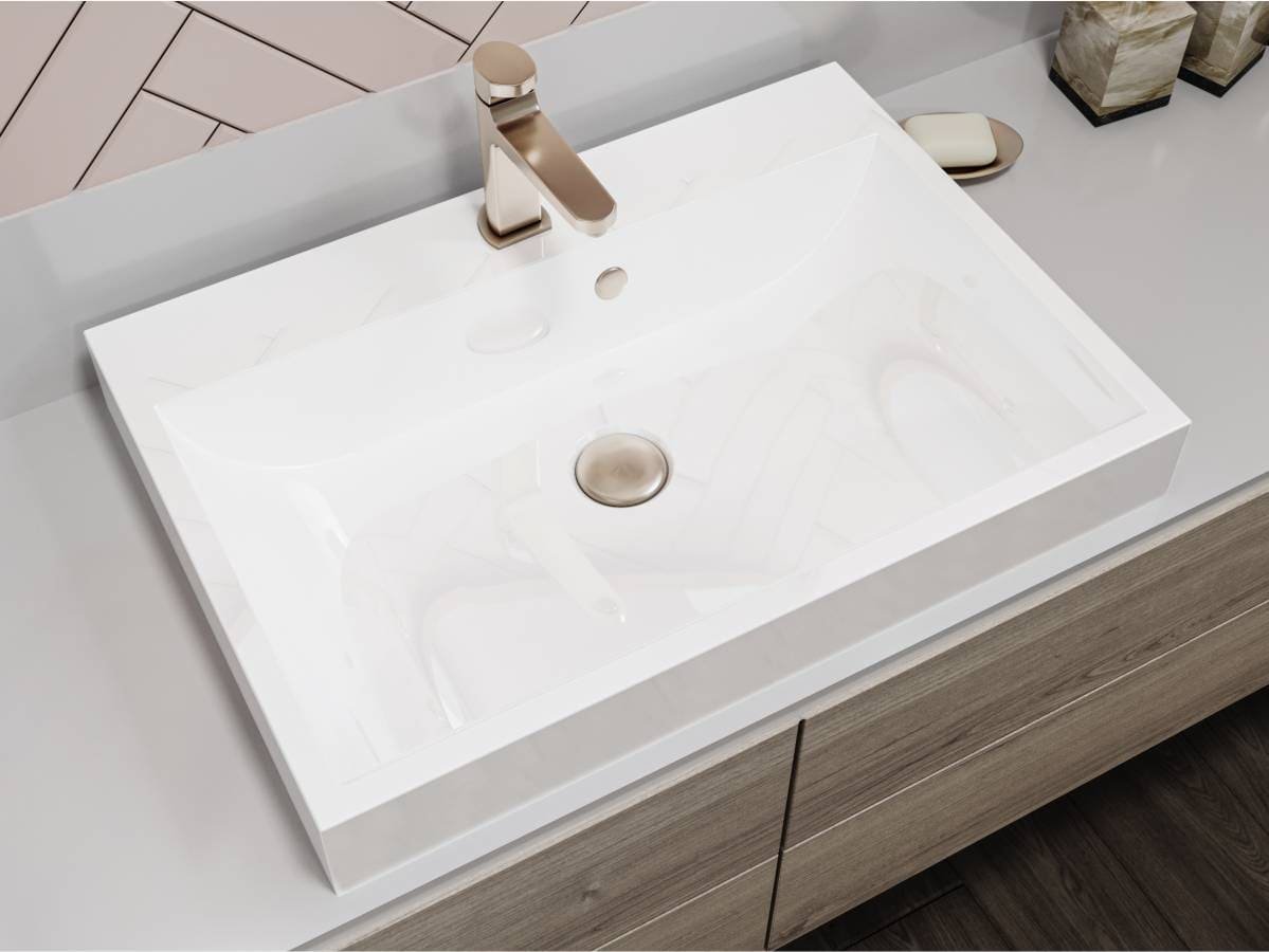 Глянец раковина зі штучного каменю гармонійно доповнить дизайн сучасної ванної кімнати. Матеріал умивальника - Miramarble.