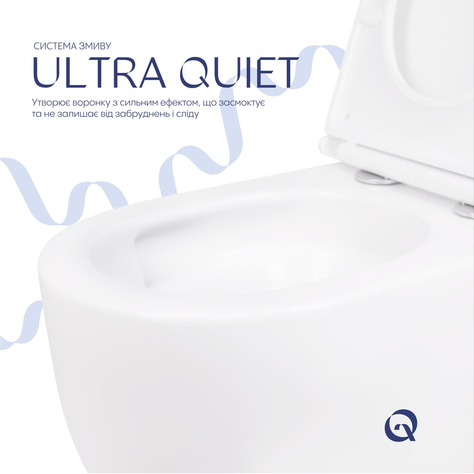 Підвісний унітаз Qtap Taurus безободковий із сидінням QT2433084EUQW має сучасний дизайн, який підійде до будь-якого інтер'єру ванної кімнати. Виріб має унікальну безшумну технологію змиву Ultra Quiet. Сидіння з функцією soft close опускається плавно та безшумно. Виріб виконано з кераміки в білому кольорі та вкрито емаллю для захисту від вологи. Унітаз без обідка, тому зайвий бруд не накопичується і виріб швидко миється. Завдяки підвісній конструкції прибирання не завдасть зайвого клопоту.