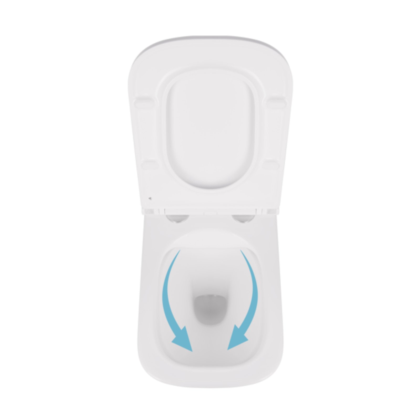 Отвори біля основи безободкової чаші з технологією змиву Rimless