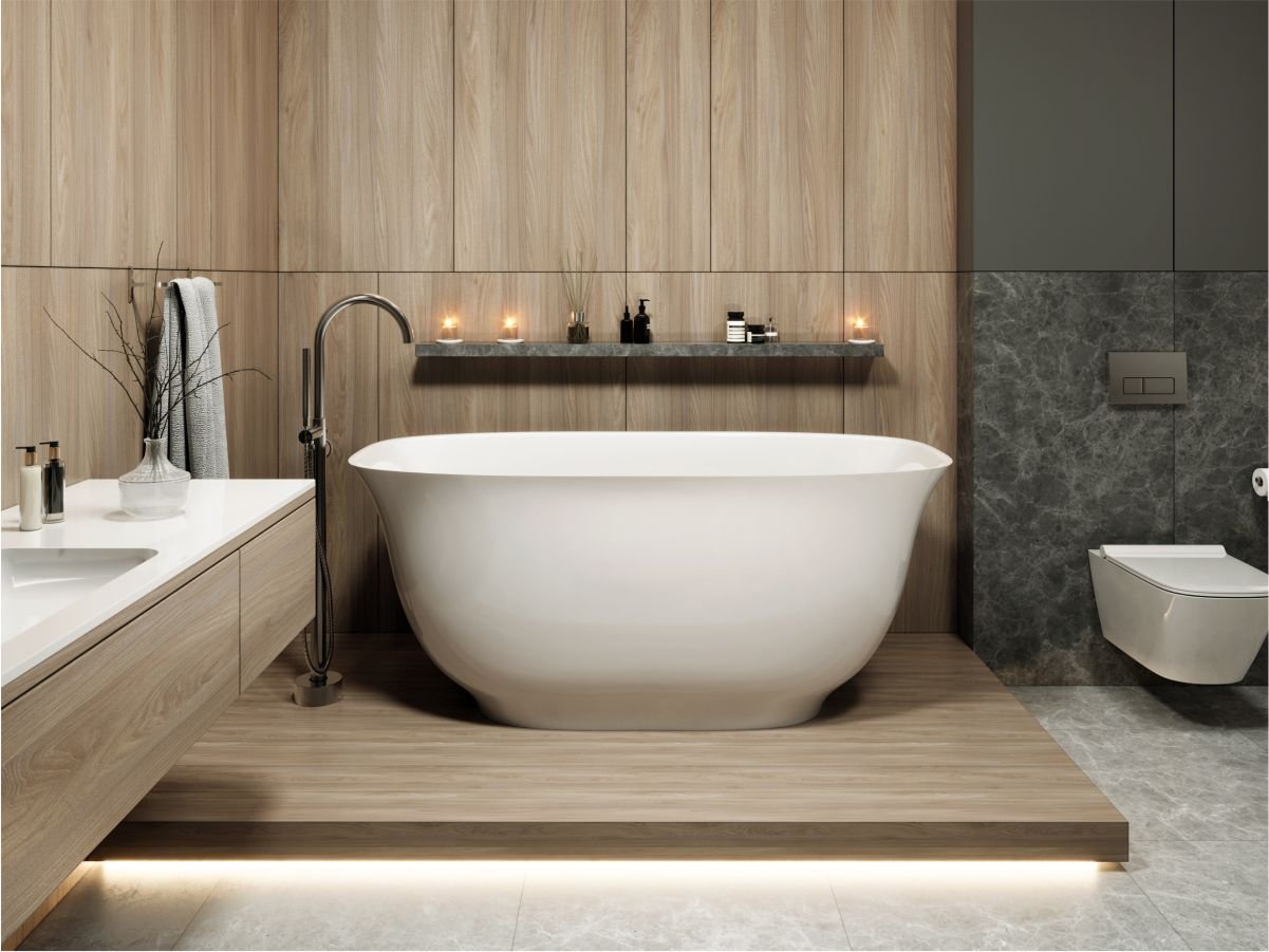 Штучний камінь - міцний і довговічний матеріал. Основним компонентом суміші є мелена мармурова крихта або боксит, які змішують із поліефірними смолами. У структурі ванни відсутні мікропори, що унеможливлює розвиток бактерій у товщі стінок.