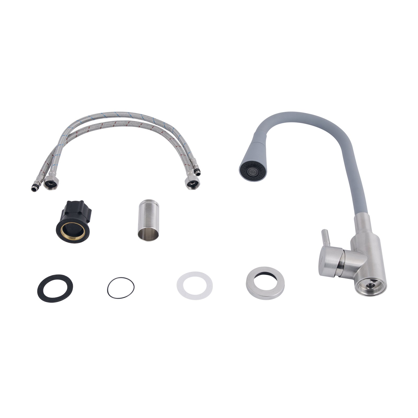 Lidz Aria 015F31 Змішувач для кухні з гнучким виливом (k35) Grey/Nickel відрізняється стильним сірим кольором з нікельованими елементами. Гнучкий вилив дозволяє легко керувати потоком води, забезпечуючи зручність у використанні, а високоякісні матеріали гарантують тривалий термін служби.