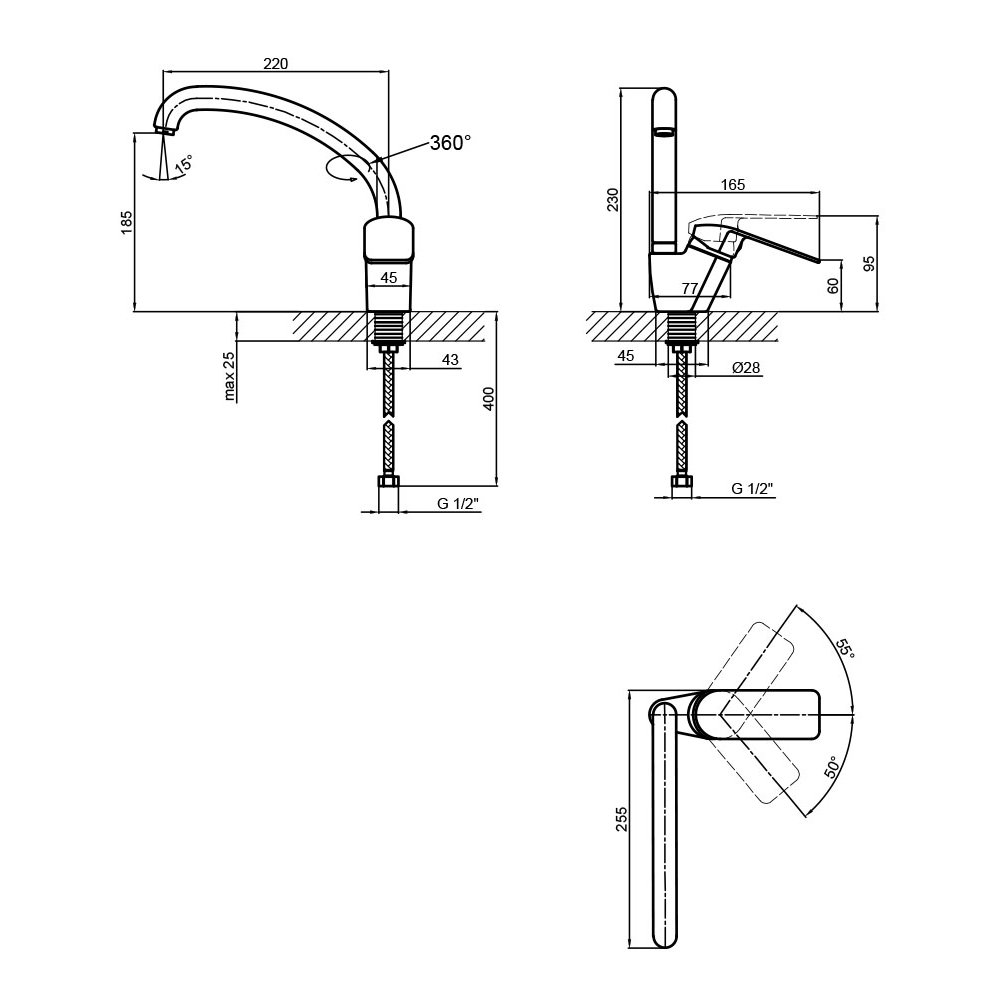 Змішувач для кухні Lidz Mars 008F (k40) LDMAR008FCRM34858 Chrome