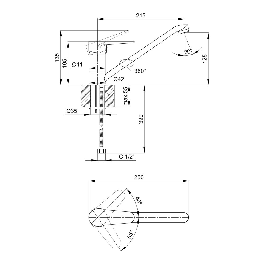 Змішувач для кухні Lidz (CRM) 14 34 002 виготовлений з цинку. Завдяки хромованому покриттю має оригінальний зовнішній вигляд. Виконаний в класичному стилі зі зручною ручкою для перемикання холодної та гарячої води. Такий змішувач не тільки практичний, але й ідеально доповнить інтер'єр кухні.