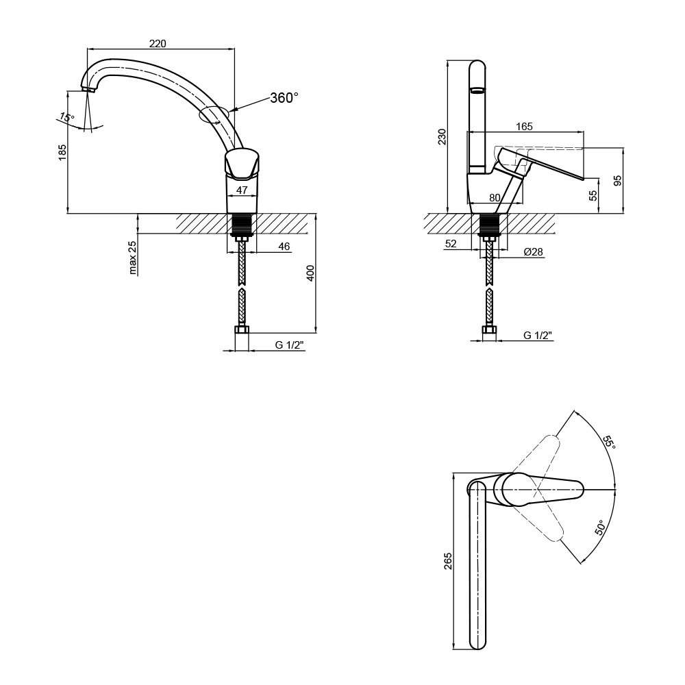 Змішувач, гнучкий підвід, кріпильні деталі.