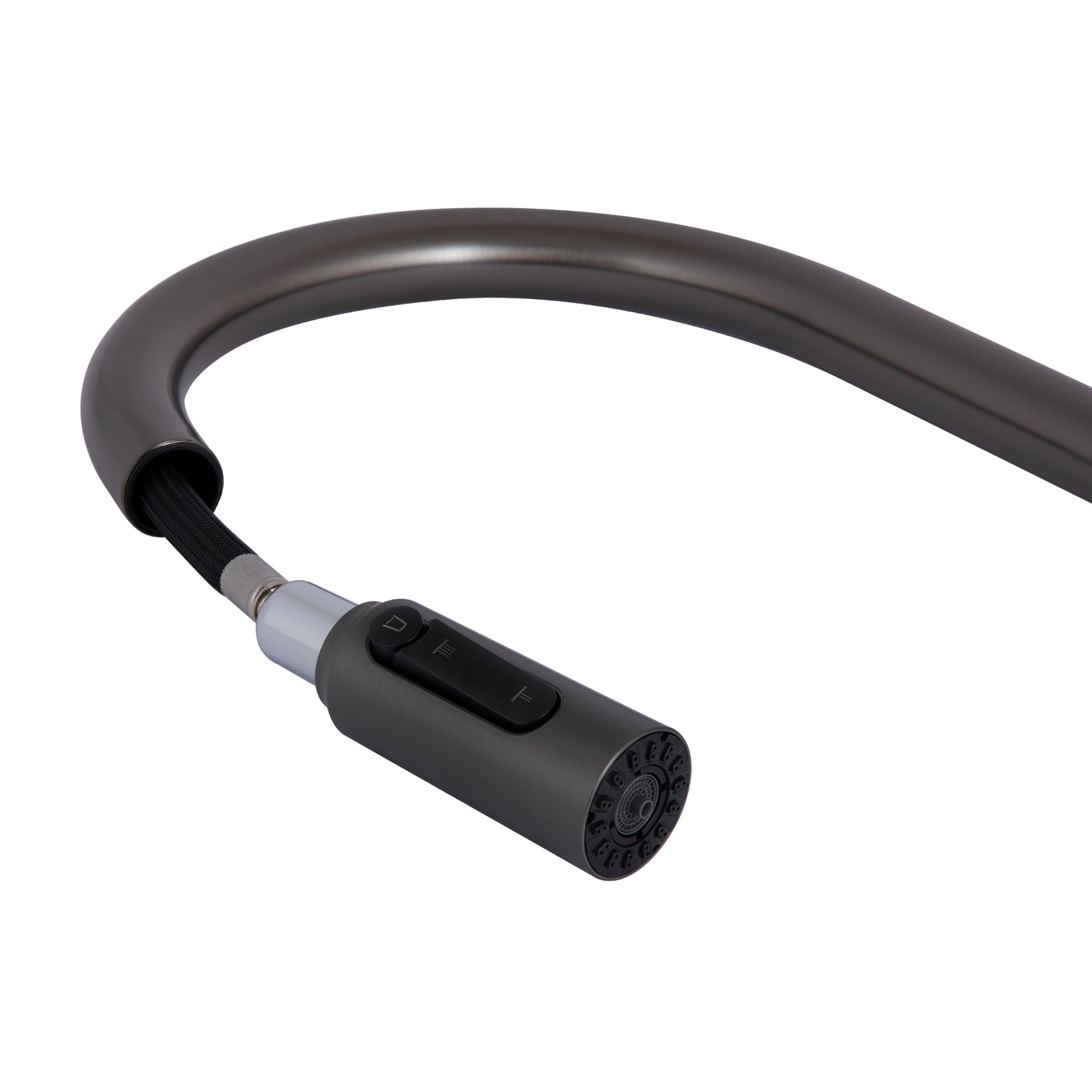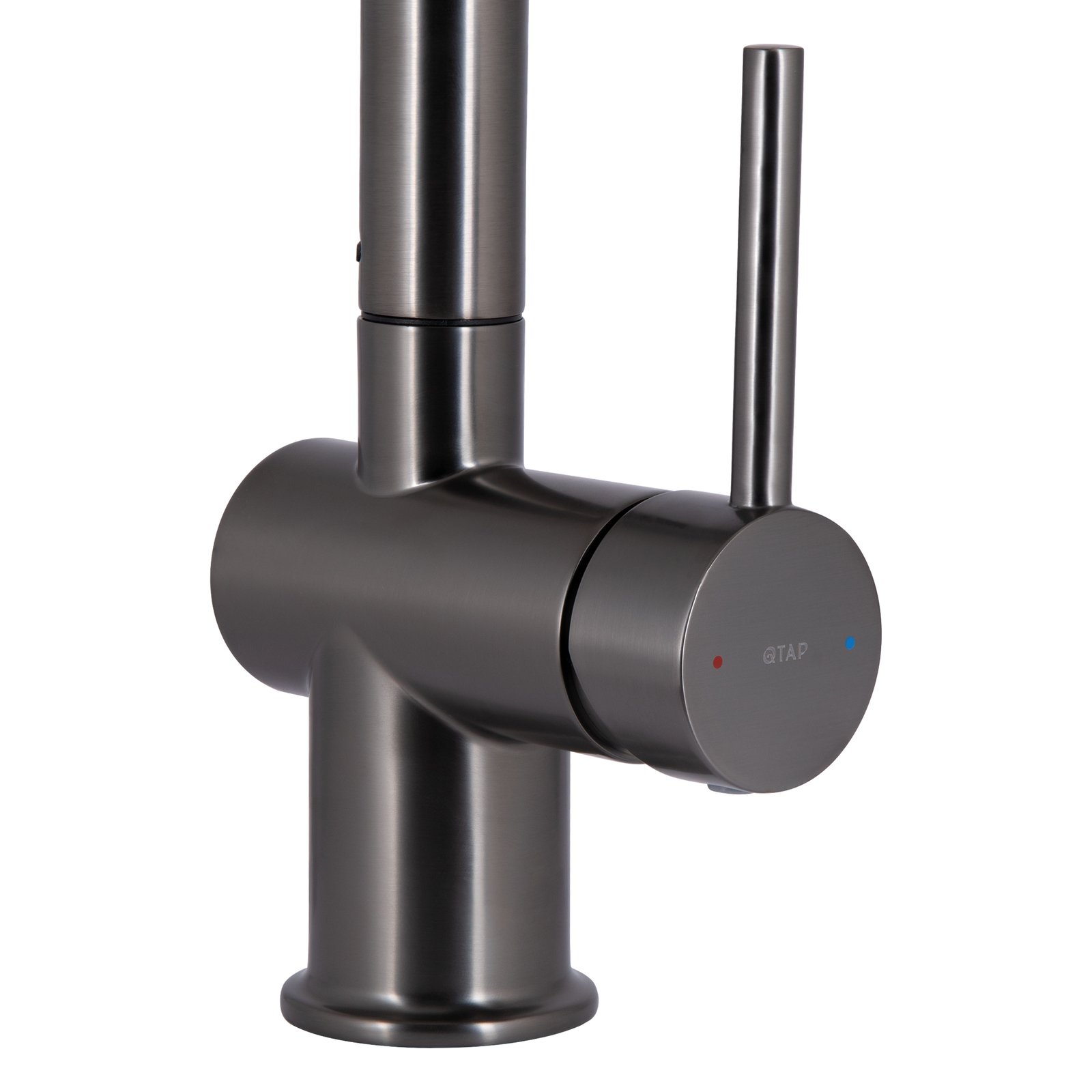 Змішувач для кухні Qtap Rozcesti QTROZ366GMB45939 у стильному кольорі збройна сталь – це ідеальне поєднання функціональності та дизайну. Висувний вилив дозволяє легко та зручно наповнювати великі ємності та очищати важкодоступні ділянки. Підключення для питної води забезпечує зручний доступ до чистої води, не потребуючи додаткового крана. Покриття захищає змішувач від корозії та механічних пошкоджень, забезпечуючи його довговічність та привабливий зовнішній вигляд.