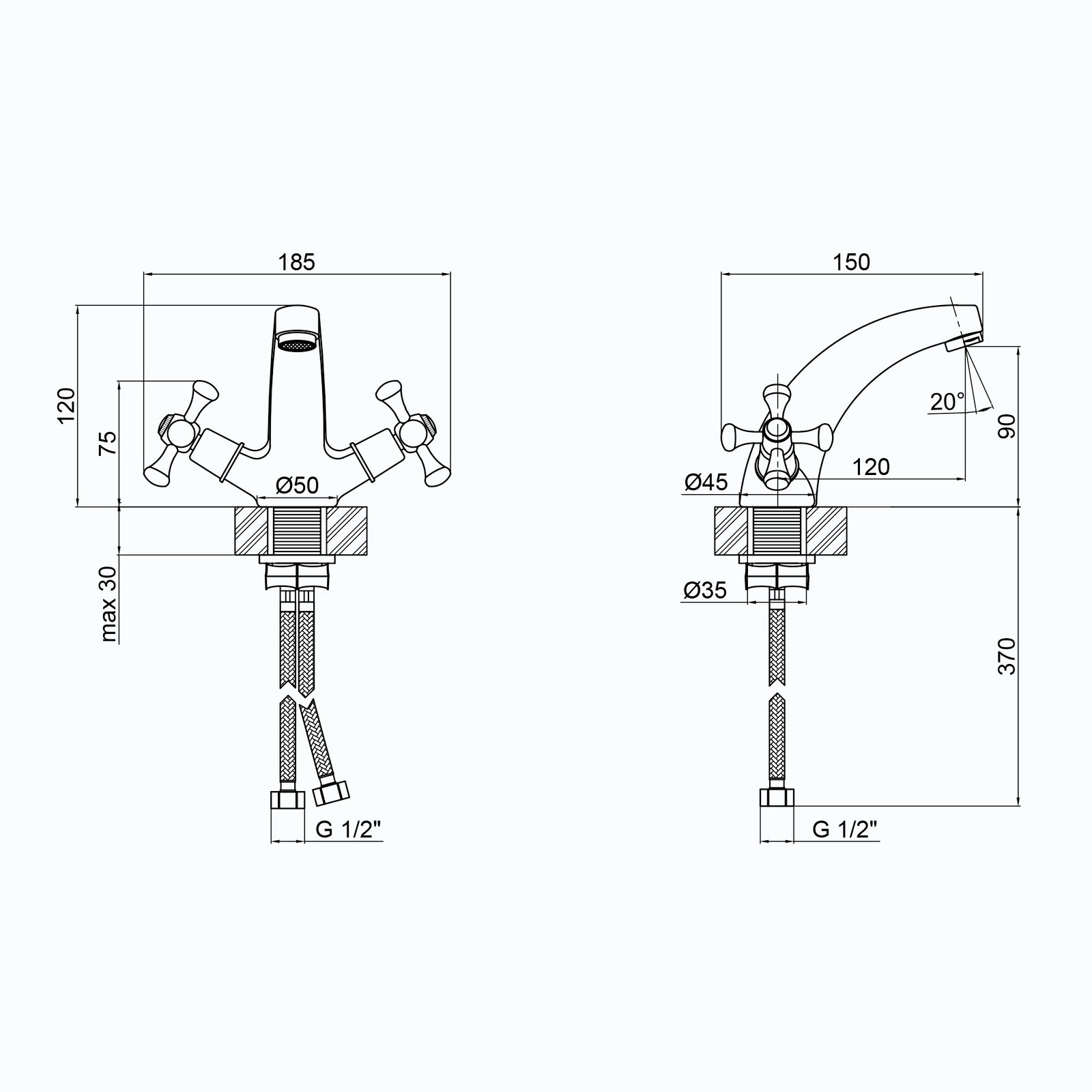 Змішувач для раковини Lidz (CRM) 75 21 161F виготовлений з цинку. Глянцева хромована поверхня надає змішувачу не тільки довговічність, а й привабливий зовнішній вигляд. Він монтується в отвір для змішувача на пристінному бортику умивальника або на стільниці. Напір і температура води регулюються поворотом зручних ручок. Підключення води відбувається через гнучкі шланги, які входять в комплект поставки. Змішувач виконано в сучасному стилі, він зручний у використанні.