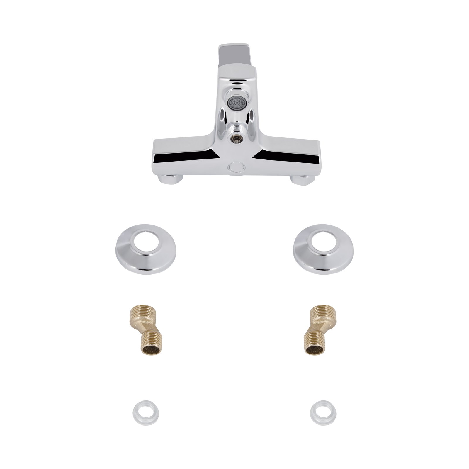 Змішувач для ванни Brinex 35C 006N виконаний із пластику та має хромовану поверхню. Для включення подачі води достатньо підняти та повернути рукоятку у необхідне положення. Настінний монтаж змішувача здійснюється за допомогою кріпильних елементів, що входять до комплекту. Круглі розетки приховують похибки установки на оздобленні ванної кімнати.
