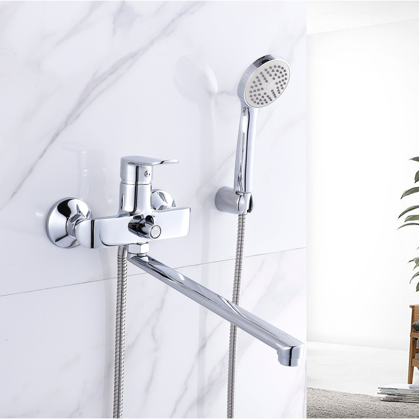 Змішувач для ванни Lidz Wieza 005 LDWIE005CRM45411 з довгим поворотним виливом виготовлений із цинку, укомплектований кронштейном для ручного душу, душовим шлангом та лійкою. Завдяки якісному покриттю має міцну поверхню та привабливий зовнішній вигляд. Декоративні розетки приховують похибки установки на оздобленні кімнати. Напір води та її температура регулюються поворотом важеля в потрібне положення. Перемикання ванни/души здійснюється за допомогою дивертора.