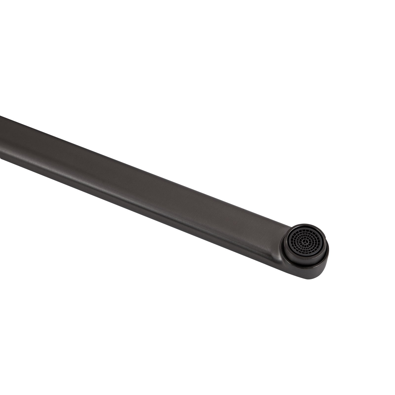 Змішувач для ванни Brinex Pure 005 із довгим поворотним виливом Graphite виконаний у стильному графітовому кольорі. Виготовлений із високоякісної нержавіючої сталі, що забезпечує довговічність та стійкість до пошкоджень. Надійний керамічний картридж гарантує плавність регулювання напору та температури води. Довгий поворотний вилив додає функціональності.