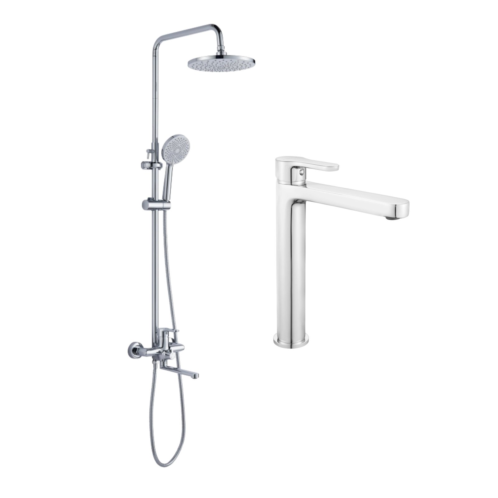 Акционный набор Lidz: Astra 001FH Смеситель для раковины высокий + Astra 1030 Душевая система универсальная на три потребителя (с изливом)