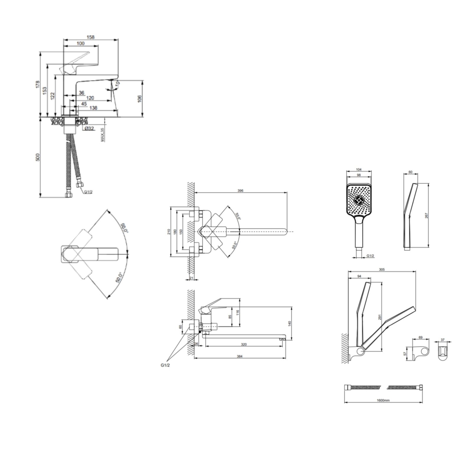0,975 - змішувач для раковини: 2,03 - змішувач для ванни