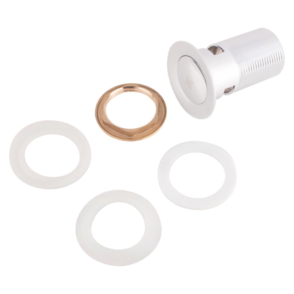 Донный клапан для раковины Lidz (CRM) 47 00 004 00 с переливом выполнен из латуни в хромированном цвете, что дает возможность сочетать его с раковинами с таким же покрытием. Изделие позволит перекрыть сливное отверстие в случае необходимости и использовать раковину как таз, а наличие перелива убережет вас от потопа, если вы ненадолго отвлеклись во время набирания воды. Клапан монтируется не более 5ти минут и управляется нажатием на крышку в виде круглой кнопки. Соединение универсальное.