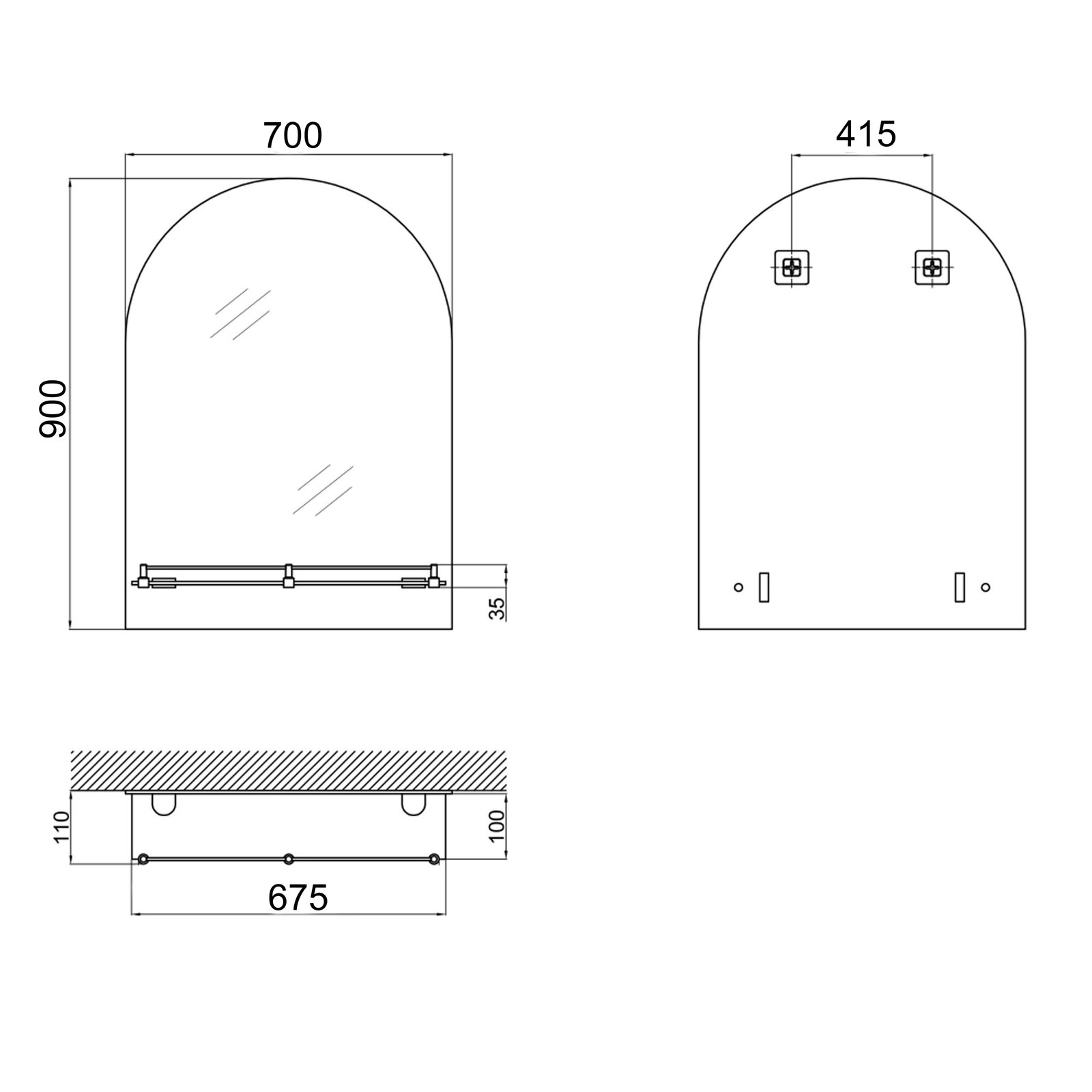 Зеркало прямоугольное Lidz Tani с полкой 700х900х110 мм LD78TA7090 крепится на стену с помощью шурупов, которые входят в комплект. Его можно поместить над умывальником в помещении с любым интерьером благодаря лаконичному дизайну. Зеркало выполнено с дугообразным верхом. Комплектуется вместе с полочкой из прозрачного стекла с хромированным бортиком, что предотвращает случайное падение гигиенических средств. Полка крепится к зеркалу с помощью металлических держателей.