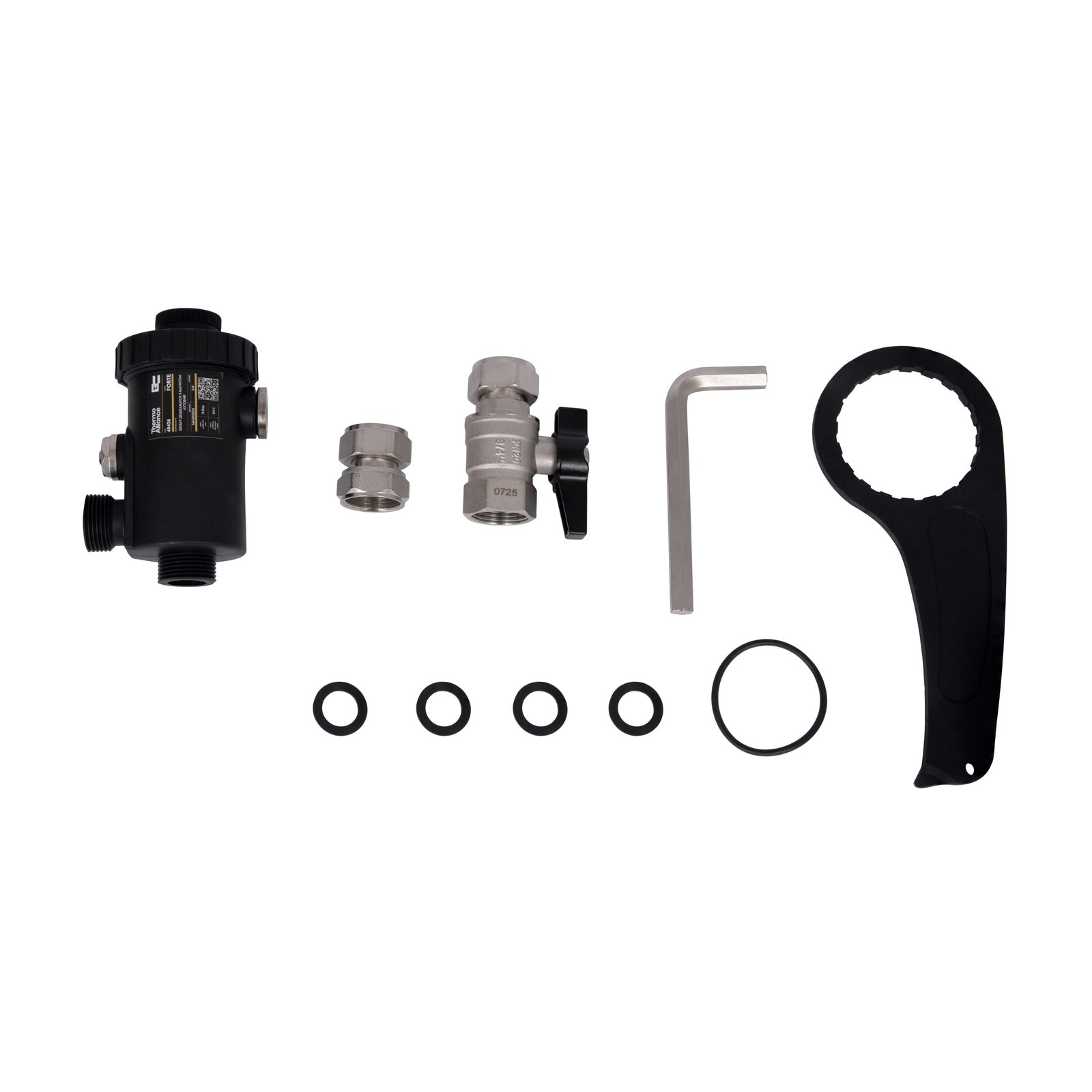 Фильтр-дешламатор Thermo Alliance Forte TAF420G20 предназначен для эффективной очистки теплоносителя от шлама и металлических частиц. Встроенный магнит обеспечивает надёжное удержание загрязнений, предотвращая засорение системы, а угловая конструкция облегчает монтаж в ограниченном пространстве. Корпус выполнен из армированного полиамида PA66G30, фильтрующий элемент — из нержавеющей стали, корпус дивертора и шаровые краны — из латуни CW617N.
