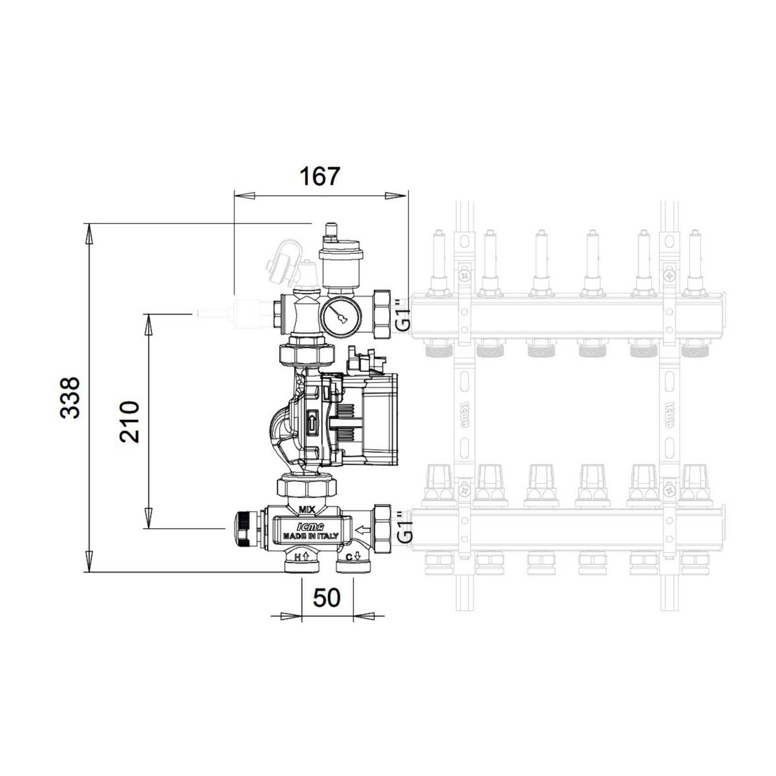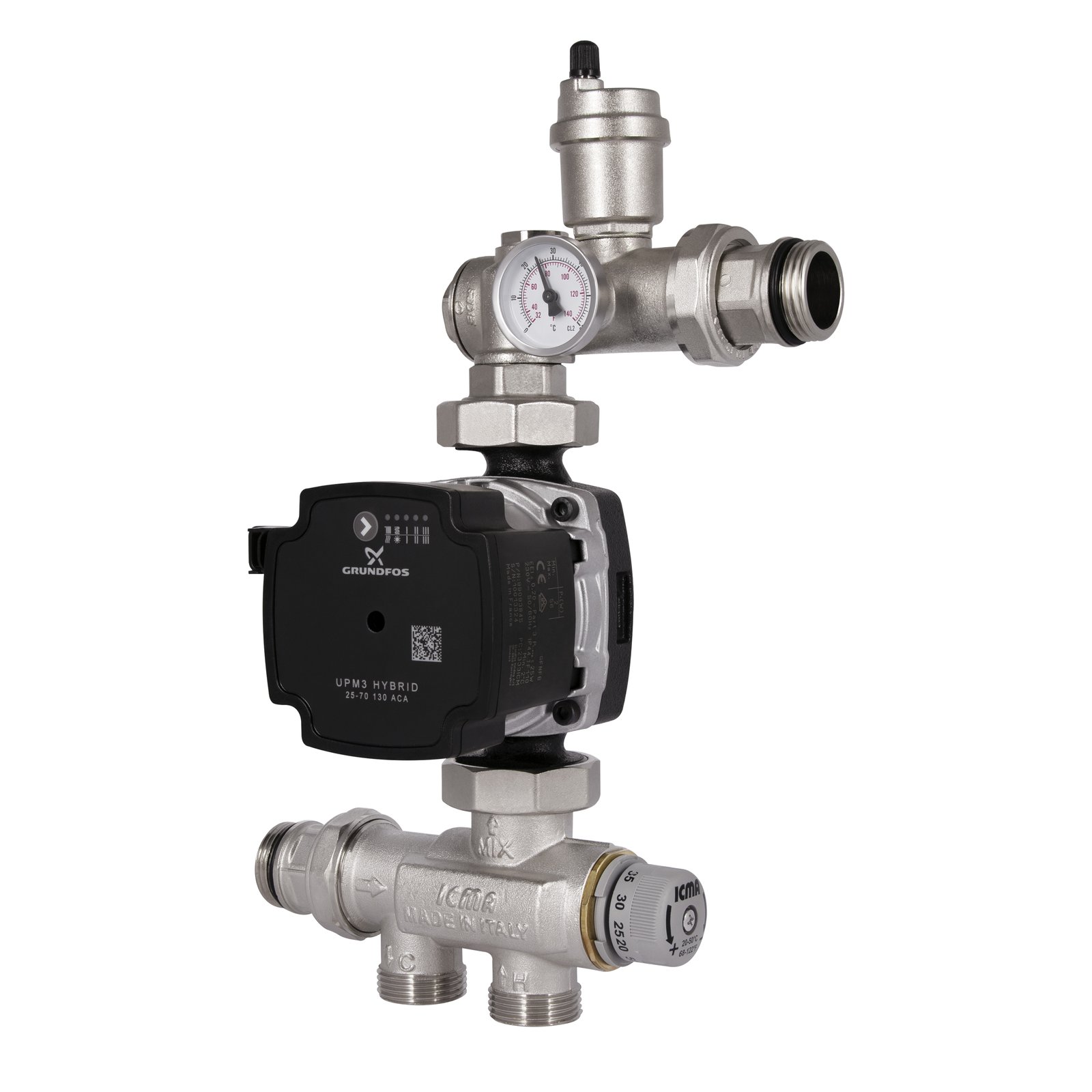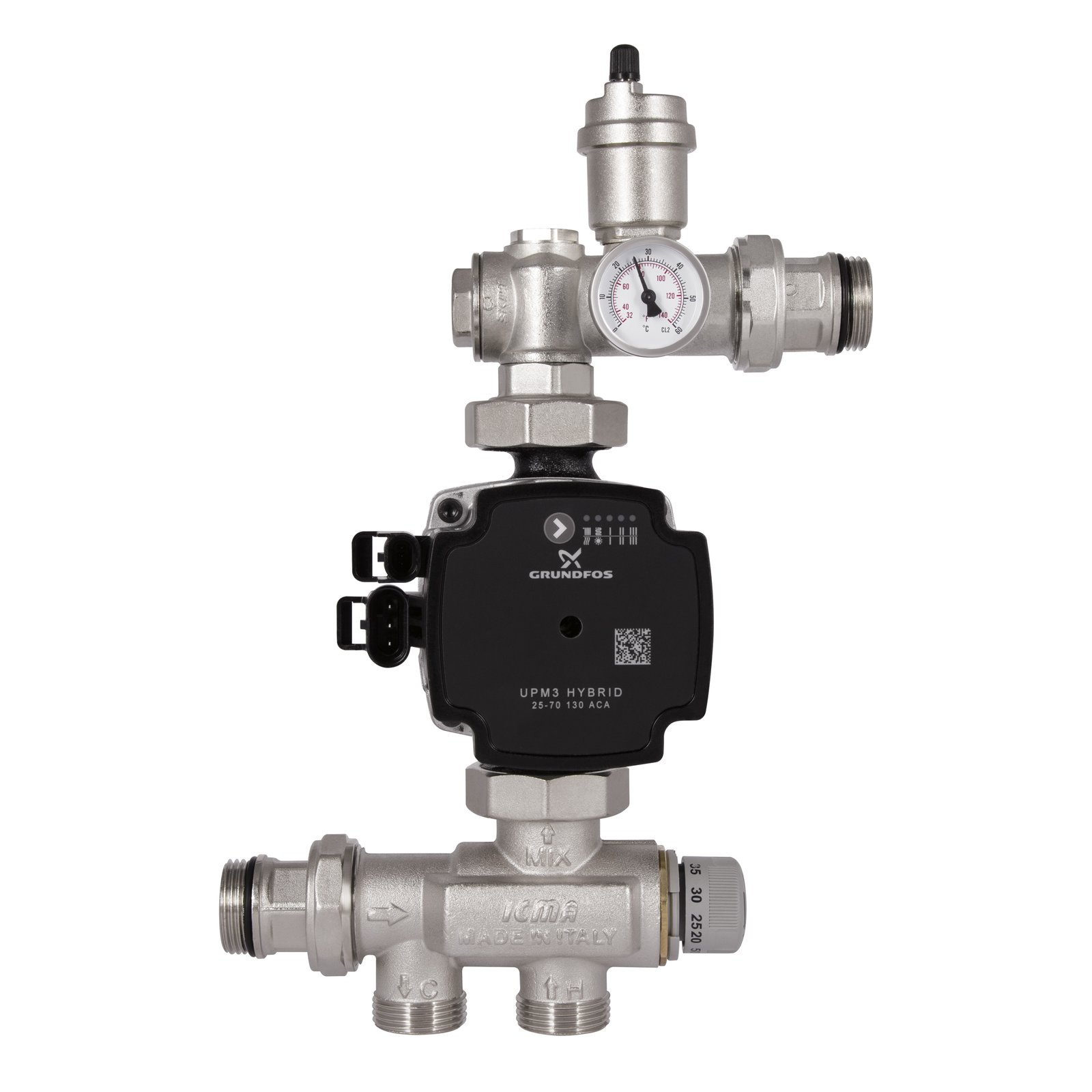 Компактная насосная группа ICMA Арт. М061 предназначена для систем теплых водяных полов и для подключения к распределительным коллекторам. Насосная группа отвечает за поддержание стабильной температуры воды, и за её беспрерывную циркуляцию. Регулировка температуры производится простым поворотом регулирующей ручки.