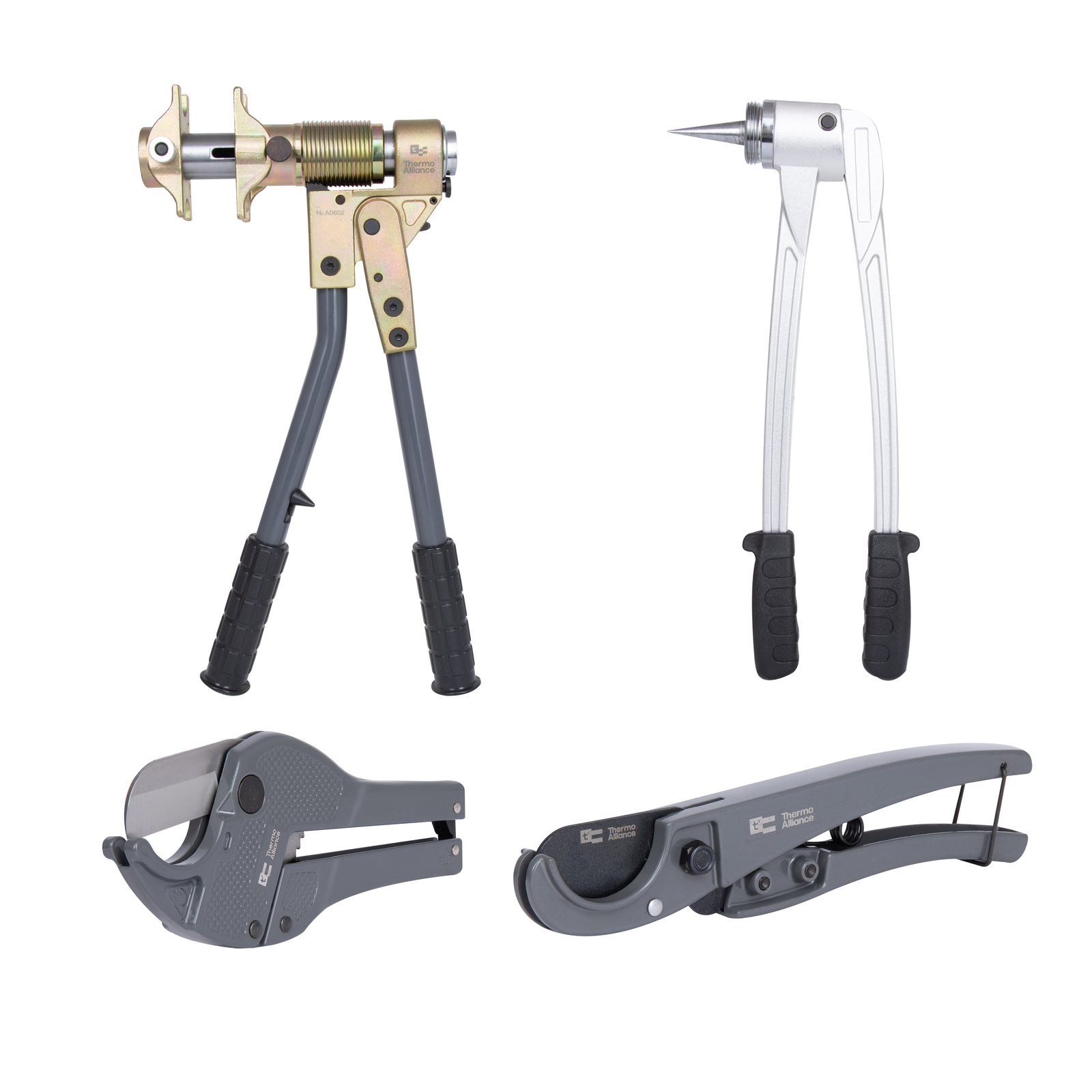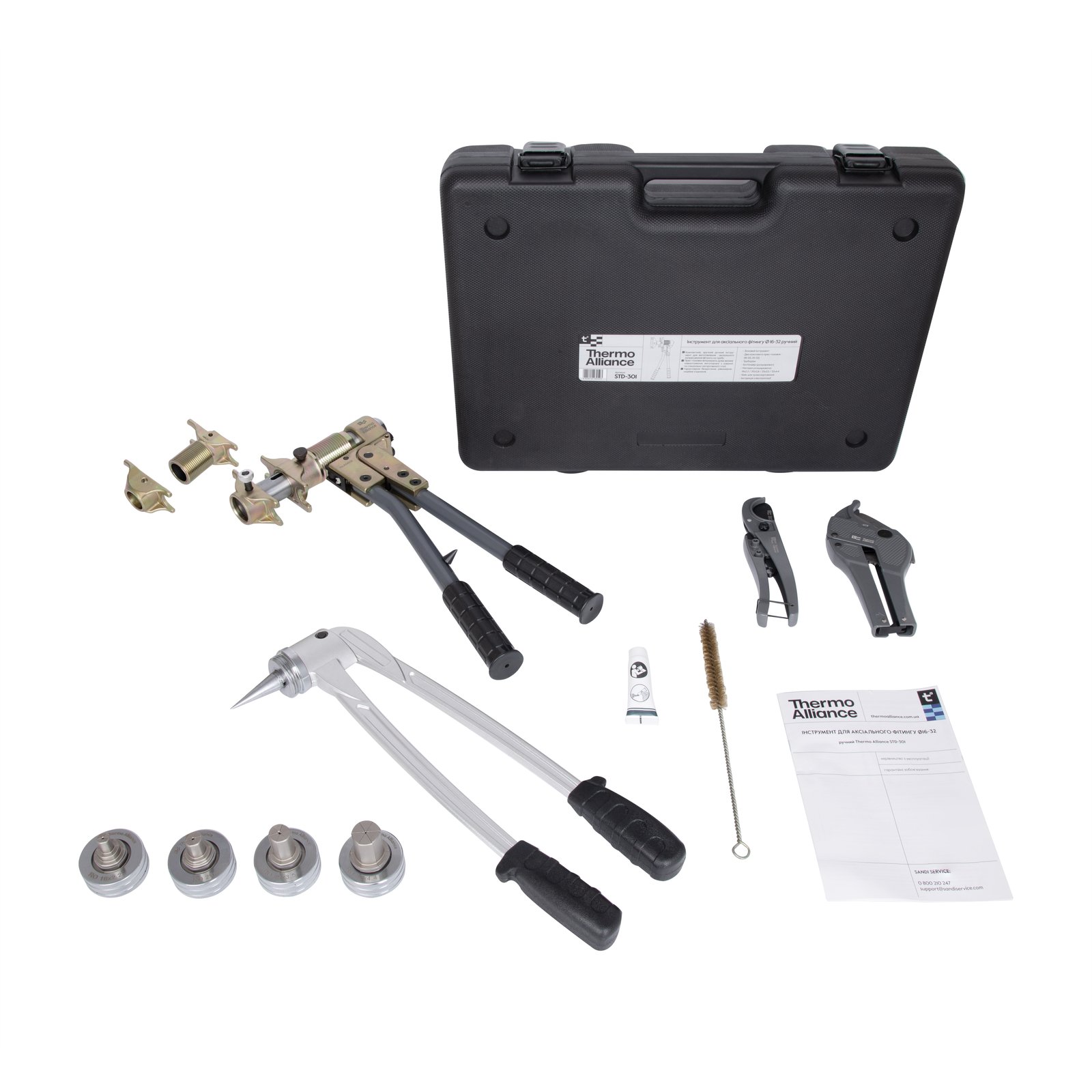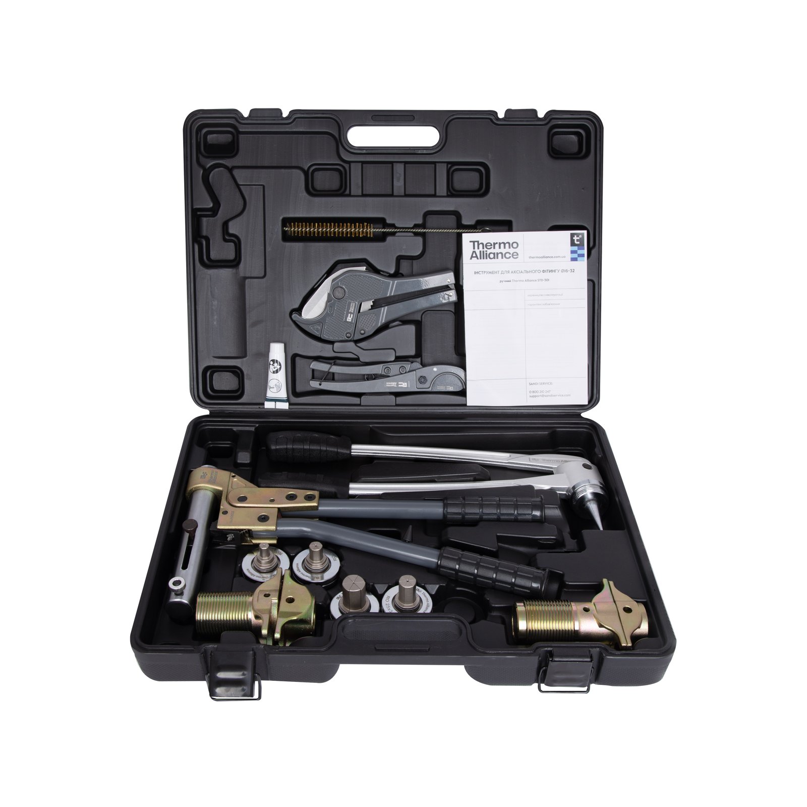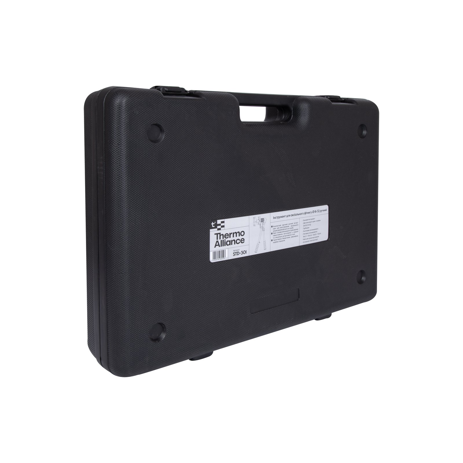Ручной инструмент для осевого фитинга Ø 16–32 Thermo?Alliance STD?301 служит для соединения осевых фитингов с полимерными трубами типов Pex?A, Pex?B, Pex?C, PERT, а также с металлополимерными трубами при условии замены расширительных насадок под нужный диаметр. Преимущество - надежный храповой механизм, обеспечивающий точное и герметичное обжатие. Комплектация: инструмент с набором сменных губок, расширитель с насадками, большой и малый труборез. Универсальный и совместим с фитингами ICMA, Rehau, General Fittings, Golan, Heat?Pex, Fado и др.