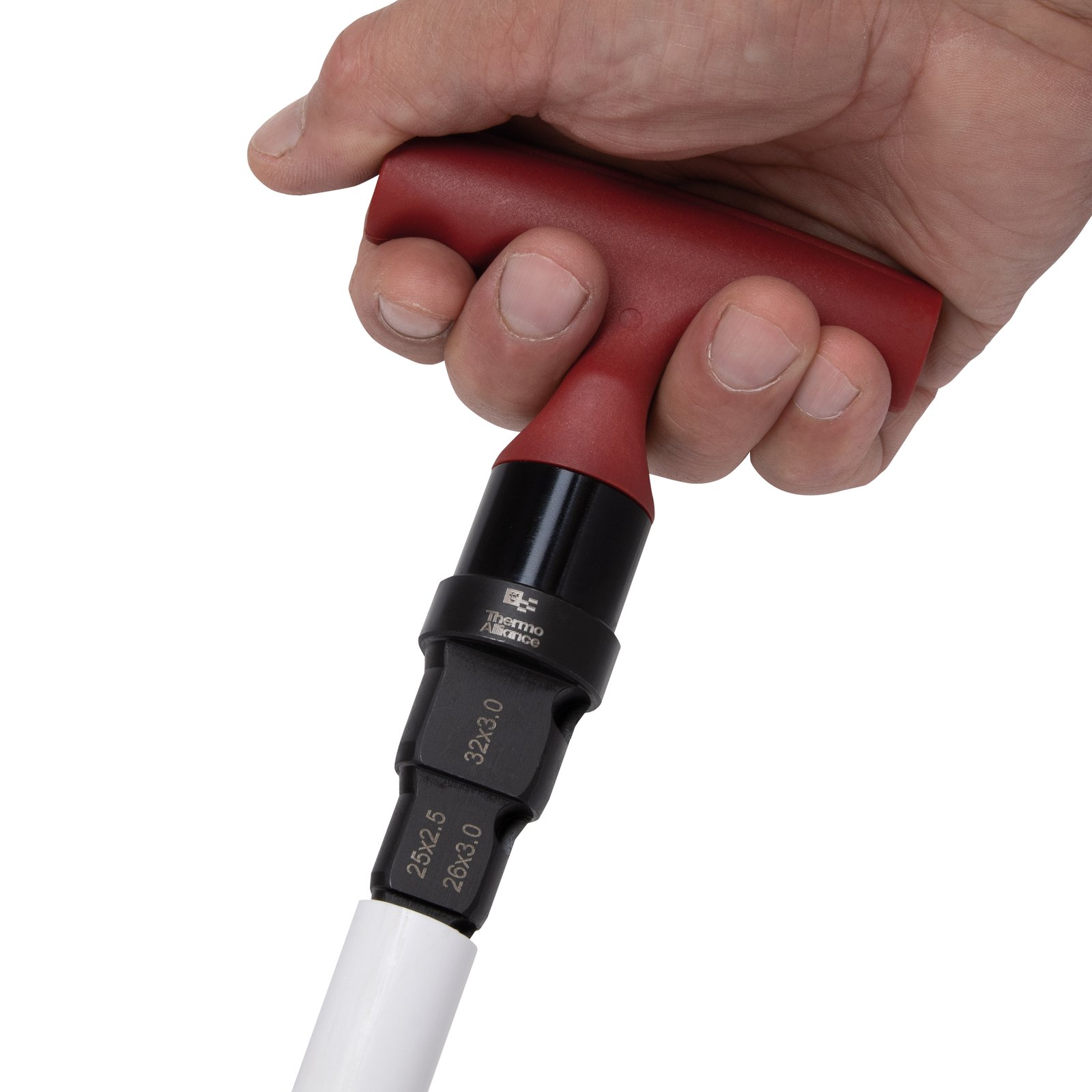 Калибратор для труб Ø 16–32 Thermo?Alliance STD?405 используется для подготовки полимерных и металлополимерных труб к соединению с осевыми, пресс? или обжимными фитингами. Идеально снимает фаску и выравнивает овальную трубу для надежного соединения. Универсальный - один калибратор на четыре диаметра: 16, 20, 26, 32 мм.