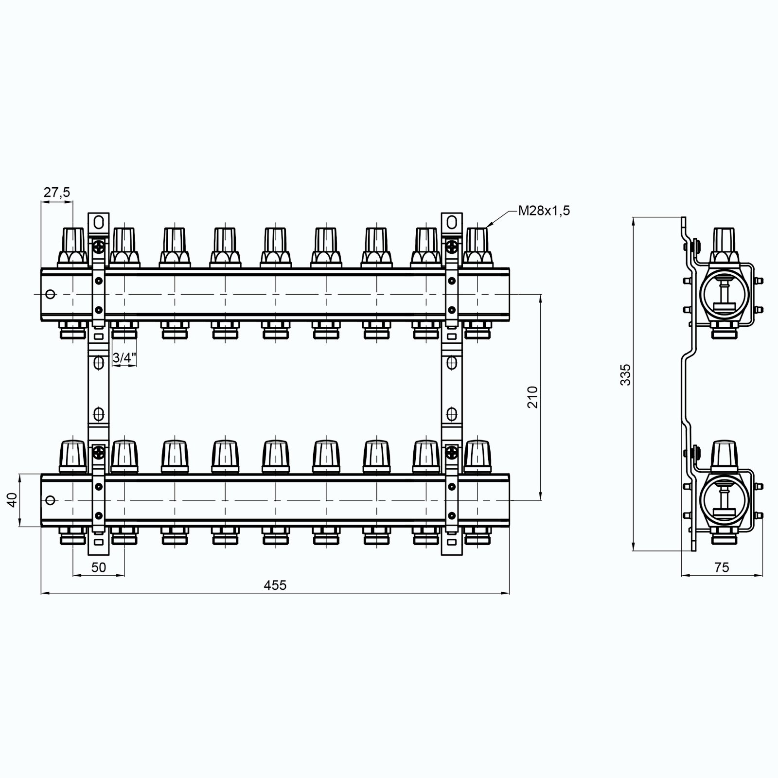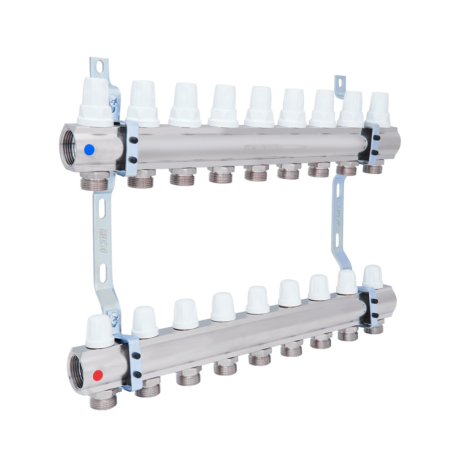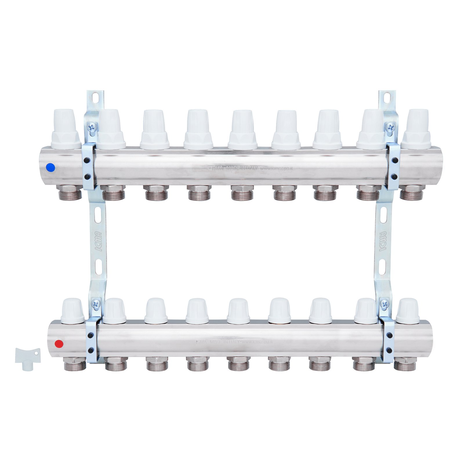 Коллектор ICMA Арт. K005 с запорными кранами с микрометрической регулировкой предназначен для распределения тепловой энергии в системе отопления. Данная установка применяется в системах радиаторного отопления. Регулировка расхода сетевой воды по контурам – ручная или терморегулирующая. Запорные краны с микрометрической регулировкой позволяют перекрывать подачу воды и регулировать расход сетевой воды в каждом контуре отопления. Коллектор имеет 9 выходов.
