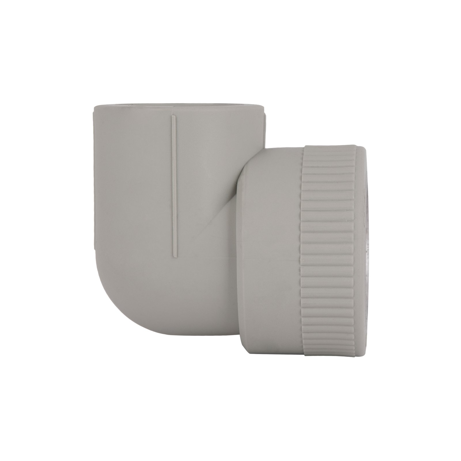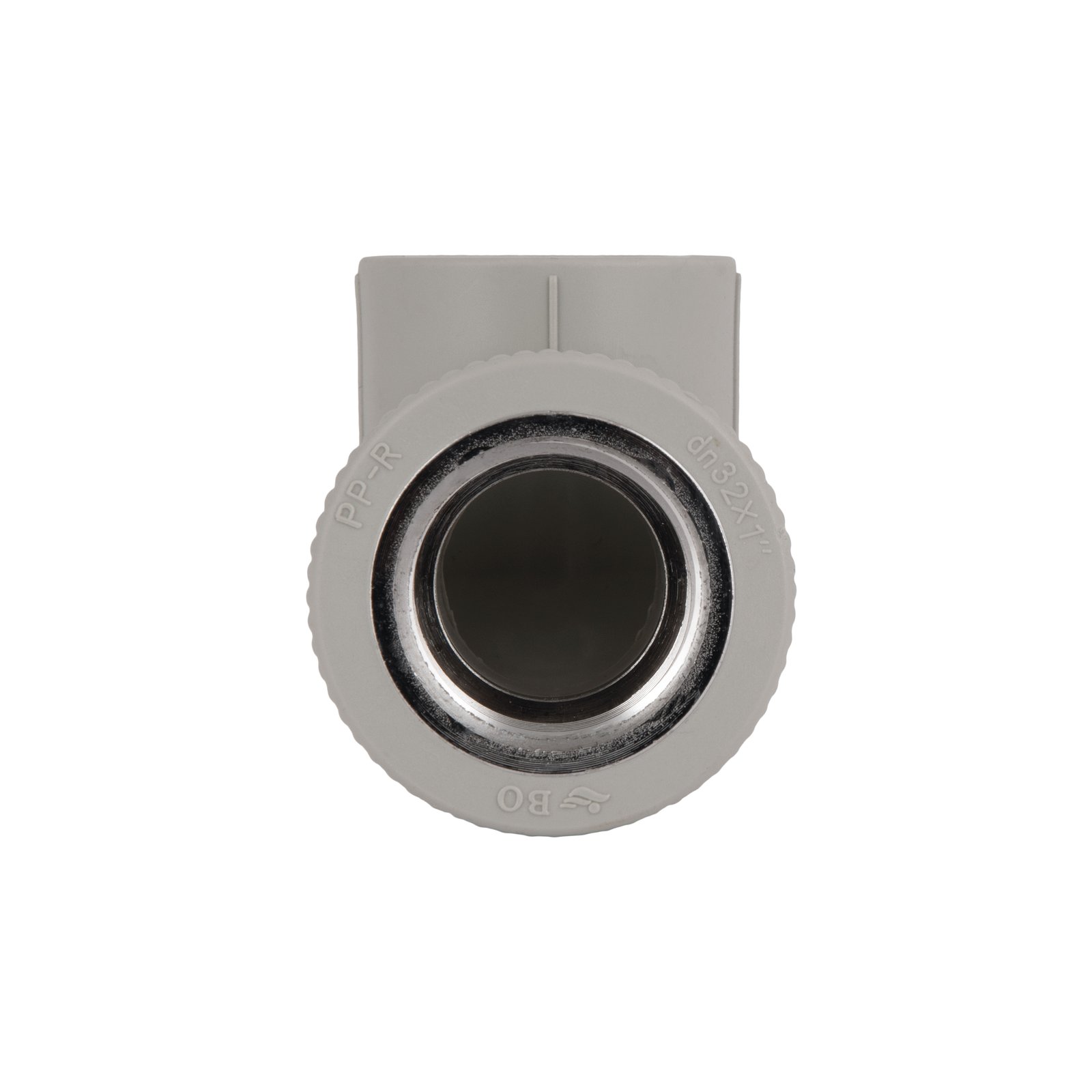 Уголок PPR Blue Ocean 32х1", 90° ВР изготовлен из качественного полипропилена с переходом на внутреннюю латунную резьбу. В случае, если необходимо изменить направление основной трубы под углом 90° или присоединить к ней отдельный элемент инженерной системы с резьбовым подключением, используют данный фитинг. Диаметр подключения составляет 32 мм, а диаметр резьбы 1".