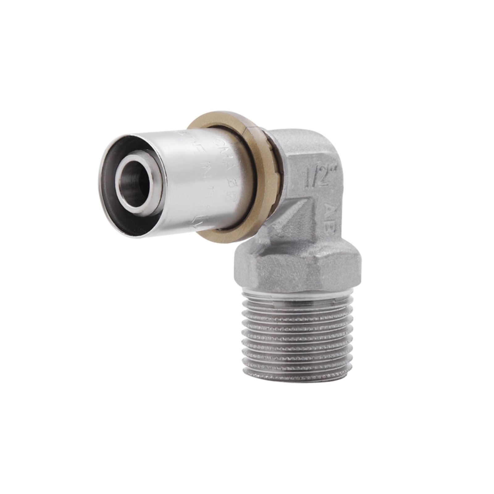 Пресс-фитинг угол ICMA Sempiter Арт. 404 1/2"х16 с наружной резьбой для металлопластиковой трубы спроектирован для применения в системах водоснабжения, отопления, и охлаждения. Пресс-фитинг Sempiter с радиальной прессовкой и с внутренней резьбой очень прост, и удобен в монтаже, и совместно с металлопластиковой трубой создает надёжную, быструю и недорогую систему. Пресс на диаметр металлопластиковой трубы 16 мм сжимает гильзу из нержавеющей стали, которая надёжно фиксирует трубу на фитинге.
