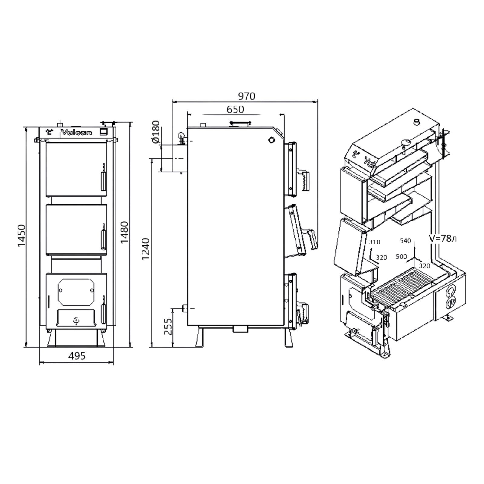 Твердотопливный котел Thermo Alliance Vulcan SF 20 VSF20V40 работает с высоким коэффициентом полезного действия и может обеспечить теплом помещение площадью до 200 м². Высокий показатель КПД достигается за счет четырехходового теплообменника с большой площадью. Большая топочная камера обеспечивает длительное горение. Стальной водогрейный котельный агрегат оборудован колосниковой решеткой из чугуна и предусматривает ручную загрузку топлива: дров, каменный уголь, брикет. Теплоизоляция стен – минер