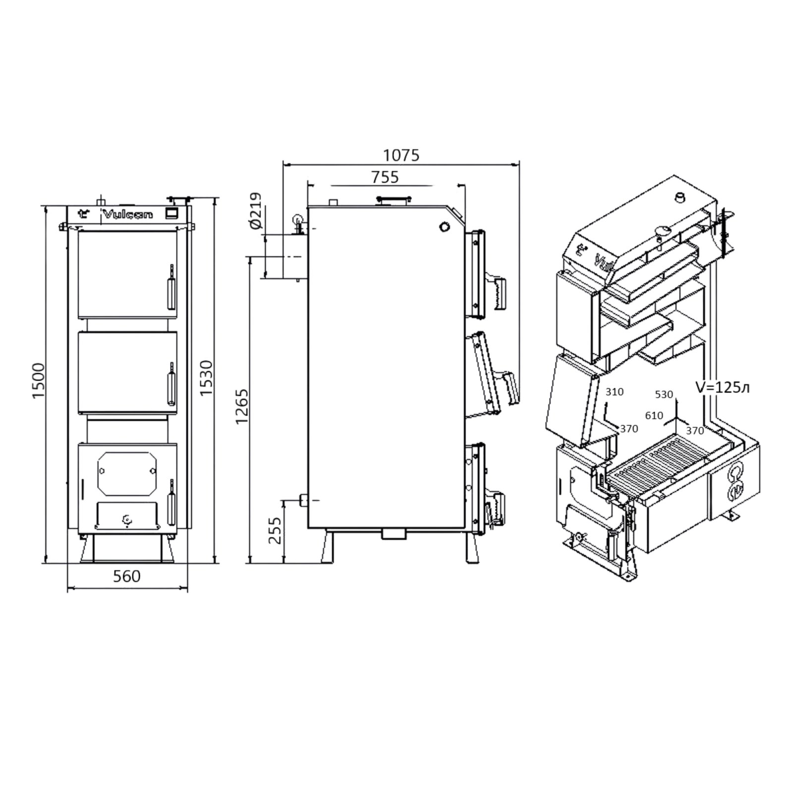 Твердотопливный котел Thermo Alliance Vulcan SF 35 работает с высоким коэффициентом полезного действия и может обеспечить теплом помещение площадью до 350 м². Высокий показатель КПД достигается за счет четырехходового теплообменника с большой площадью. Большая топочная камера обеспечивает длительное горение. Стальной водогрейный котельный агрегат оборудован колосниковой решеткой из чугуна и предусматривает ручную загрузку топлива: дров, каменный уголь, брикет. Теплоизоляция стен – минеральная ва