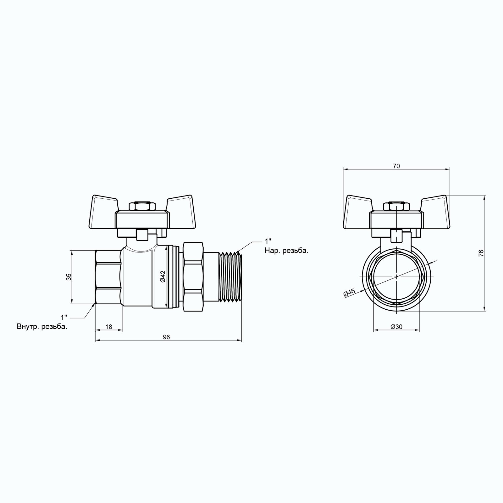 Кран шаровой "Американка" Thermo Alliance Standart 1" ВН прямой SD220NW25PN40 - применяется в качестве запорной арматуры. Управляется с помощью ручки в форме бабочки, строго на 90°С.