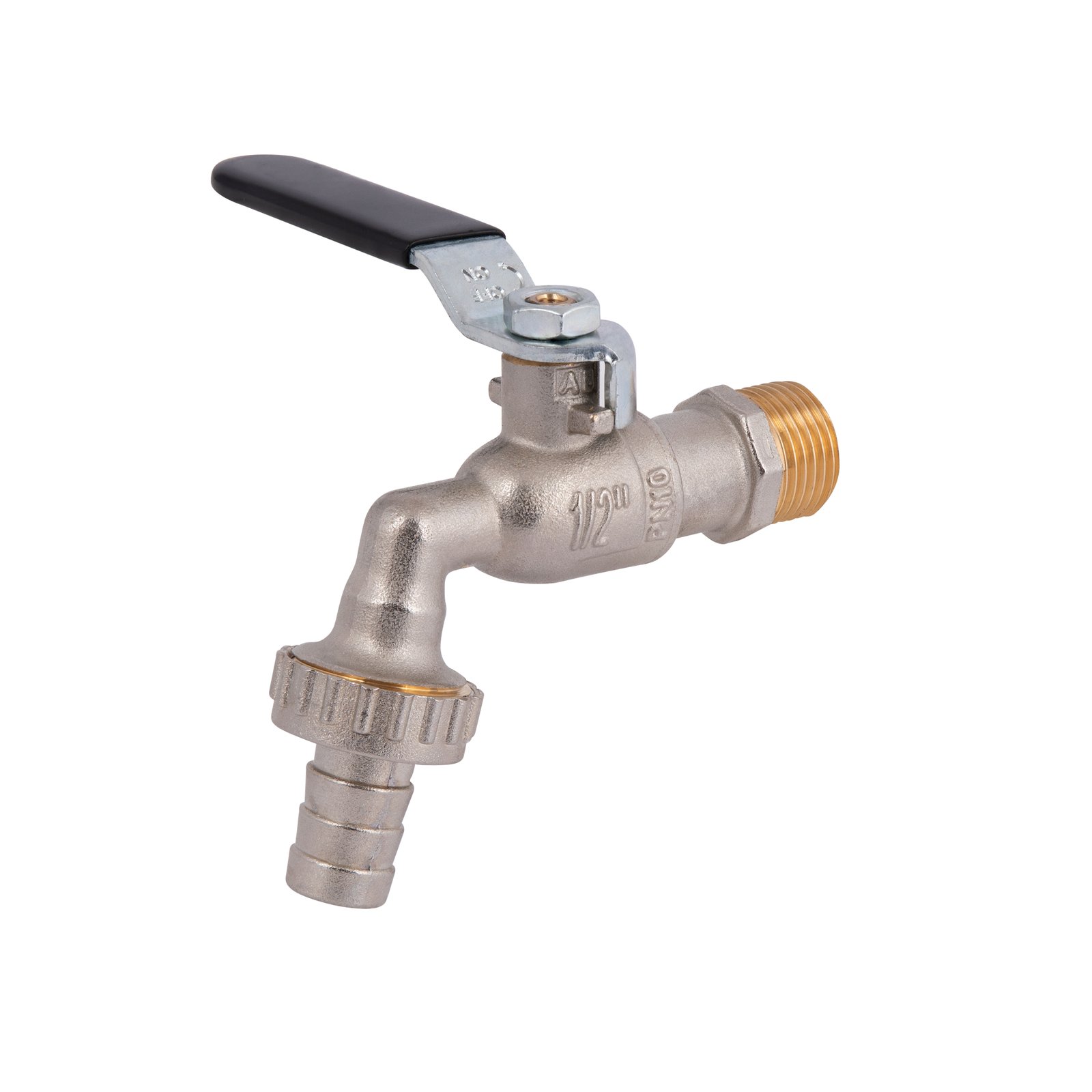 Садовый шаровой кран Icma №599 оснащён системой предотвращения застоя воды и защиты от замерзания. Оснащён штуцером для подключения шланга диаметром 15 мм. Корпус выполнен из никелированной латуни, шар и управляющий стержень - также латунные. Уплотнители изготовлены из EPDM с добавлением тефлона. Управление осуществляется алюминиевым рычагом. Предназначен для работы с водой в температурном диапазоне от 5 до 90°C, выдерживает давление до 10 бар.