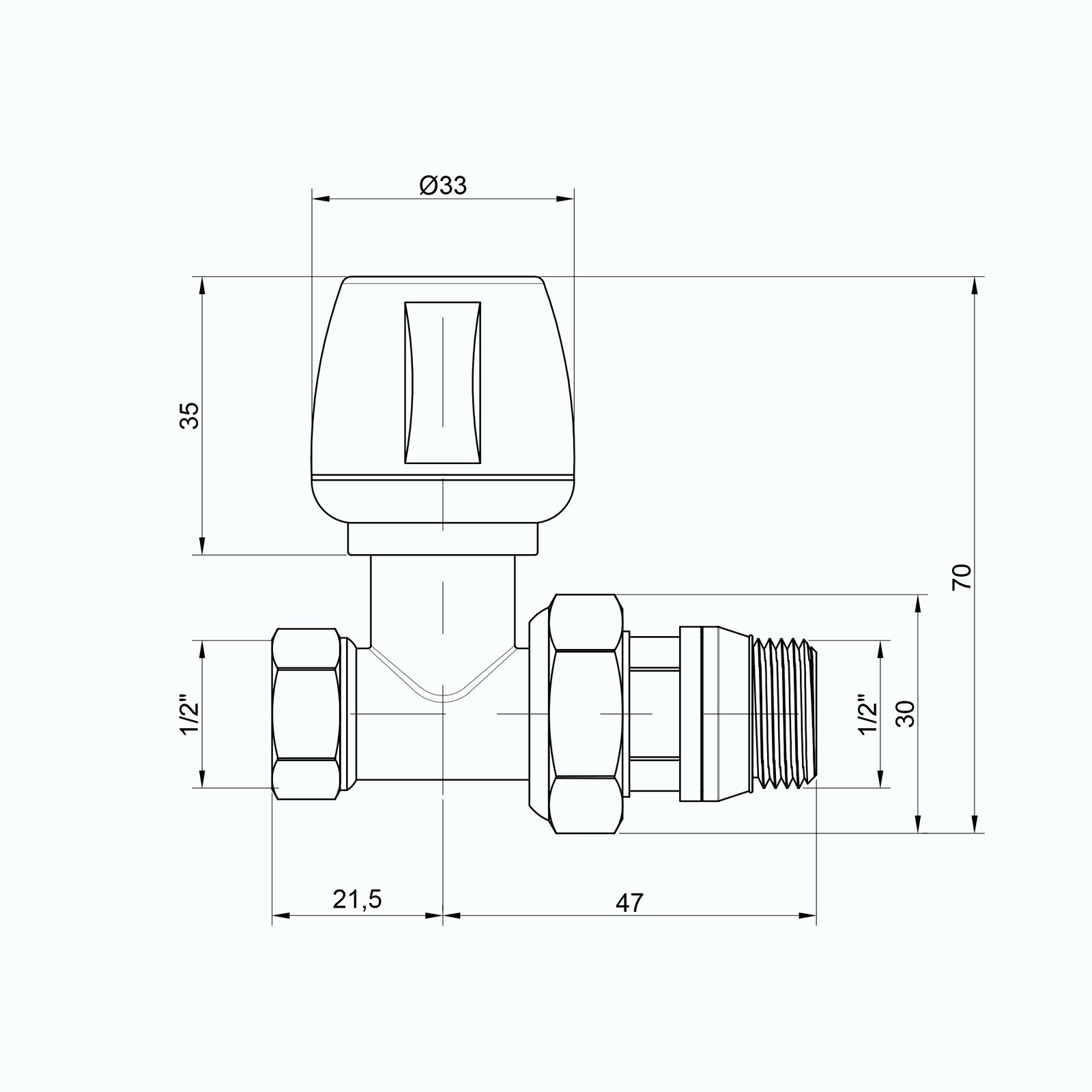 Ручной верхний вентиль предназначен для регулирования теплового режима отопительного прибора путем изменения количества теплоносителя от нуля до величины, которая определена данным настроечным вентилем. Такой принцип регулирования позволяет производить плавную регулировку и снижать шумы, возникающие в системе отопления при движении теплоносителя. Вентиль ICMA выполнен из высококачественной горячештампованной латуни CW617N - UNI EN 121655, наружное покрытие вентиля - никелирование.