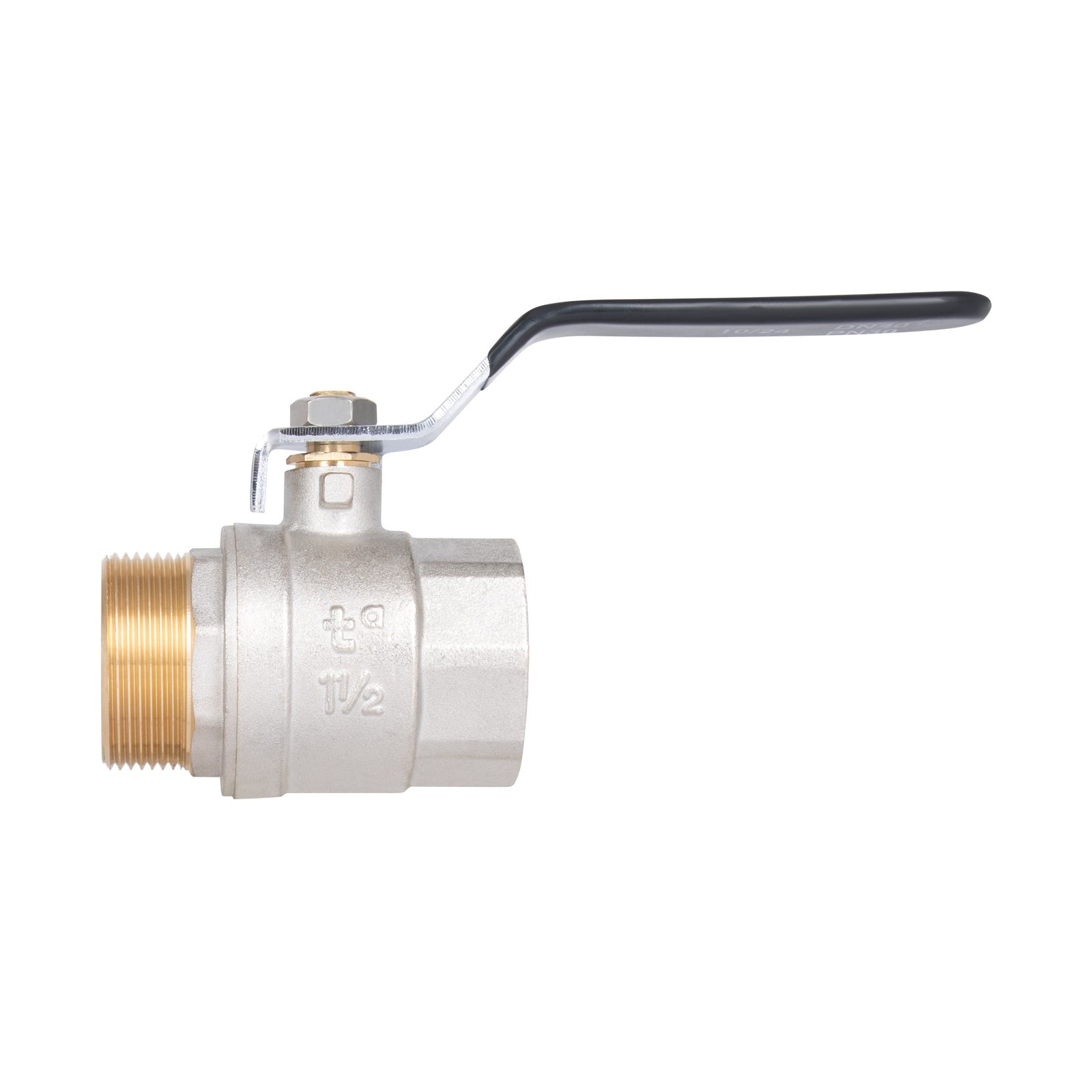 Кран шаровой SD Plus 1" 1/2 ВН для воды (рычаг) SD605W40 изготовлен из латуни и покрыт никелевым покрытием для усиления защиты изделия от коррозии. Резьба подключения — с одной стороны внутренняя, с другой — наружная. Такая водопроводная арматура предназначена для полного перекрытия потока рабочей среды. Для переключения состояния открыто/закрыто используют ручку-рычаг, ее необходимо повернуть одним движением на 1/4 оборота (90°). Кран не предназначен для регулировки! Запорный механизм — шар.